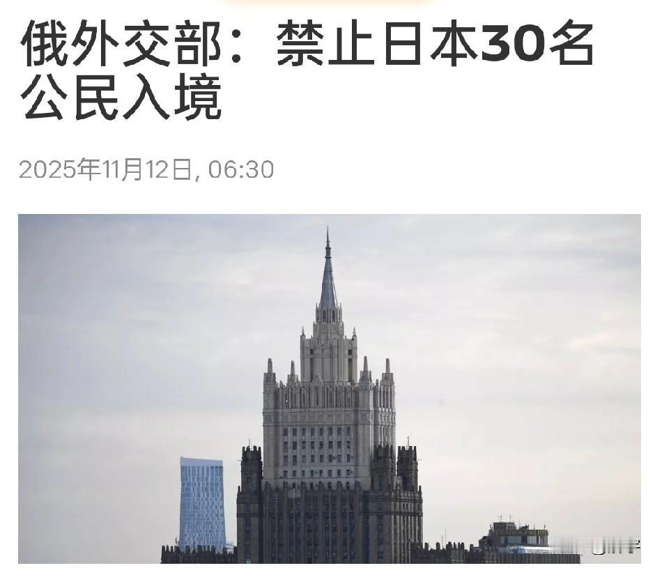 日本惨遭报复!俄罗斯对日本发起禁止行动! 就在当前中日间因日本首相高市早苗的涉台不当言论和薛剑总领事的强势反击引发的舆论战让全球关注,引发热议之际,俄罗斯加入了战团,对日本果断出手,有效的打击了高市早苗政府的嚣张气焰! 就在刚刚,国际媒体报道了一个振奋人心的消息,俄罗斯外交部11月11日已在官网公开发布消息,无浪期禁止包括日本外务省发言人在内的30名日本官员、记者、教授入境。这是俄罗斯又一次旗帜鲜明的对日本参加欧洲制裁俄罗斯的行动的打击报复,全程公开透明,毫不犹豫!事实上,俄罗斯对于日本的态度,一向果断,以南千岛群岛问题为例,自苏联依据《雅尔塔协定》占据该群岛之后,数十年来,无论是苏联还是俄罗斯,对日本各届政府的软磨硬泡都毫不让步,甚至用强化军事部署来回应。即使俄罗斯处于乌克兰问题的泥潭中,也坚决对日本采取强硬态度。反观日本,他们对俄罗斯却硬气不起来,即使特朗普亲临日本要求高市早苗停止购买俄罗斯能源,对特朗普小鸟依人般的高市早苗也未敢应承。从日本对俄罗斯和美国谦卑恭顺的态度可见,日本人的民族秉性一如众多网友所言,日本人只臣服于那些把他们打服过的国家,一如女人慕强!对于这样的国家,和他们进行口水战永远难以解决实质问题,从这个角度看,薛剑总领事的相关言论就是解决问题的最佳办法,难怪能够得到全民拥护!