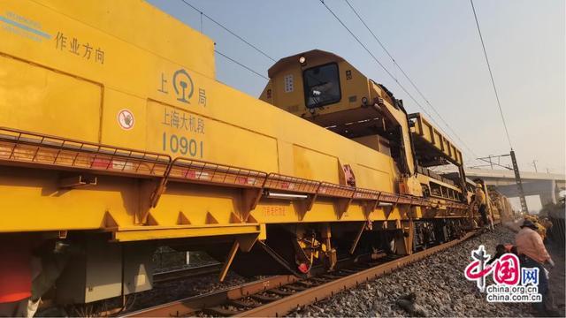 2025年11月8日,上海大机运用检修段职工正在进行大列换枕施工作业。吴春军摄