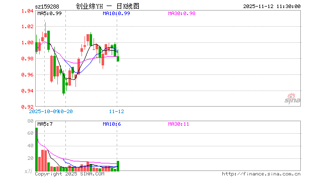 11月12日,截止午间收盘,创业板综ETF银华(159288)跌0.61%,报0.976元,成交额1565.30万元。创业板综ETF银华(159288)重仓股方面,宁德时代截止午盘跌0.19%,中际旭创跌1.93%,东方财富跌0.84%,迈瑞医疗涨1.28%,新易盛跌1.81%,胜宏科技跌1.20%,阳光电源跌4.88%,温氏股份跌0.60%,汇川技术跌0.60%,蓝思科技涨2.64%。