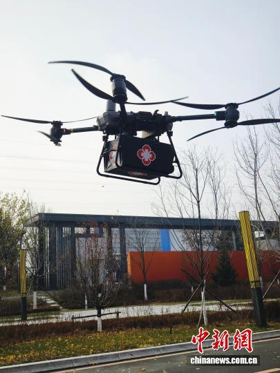 迅核一号低空物流无人机配送启动升空。赵桂华摄