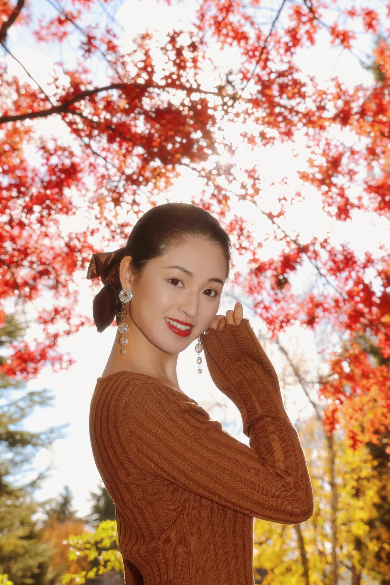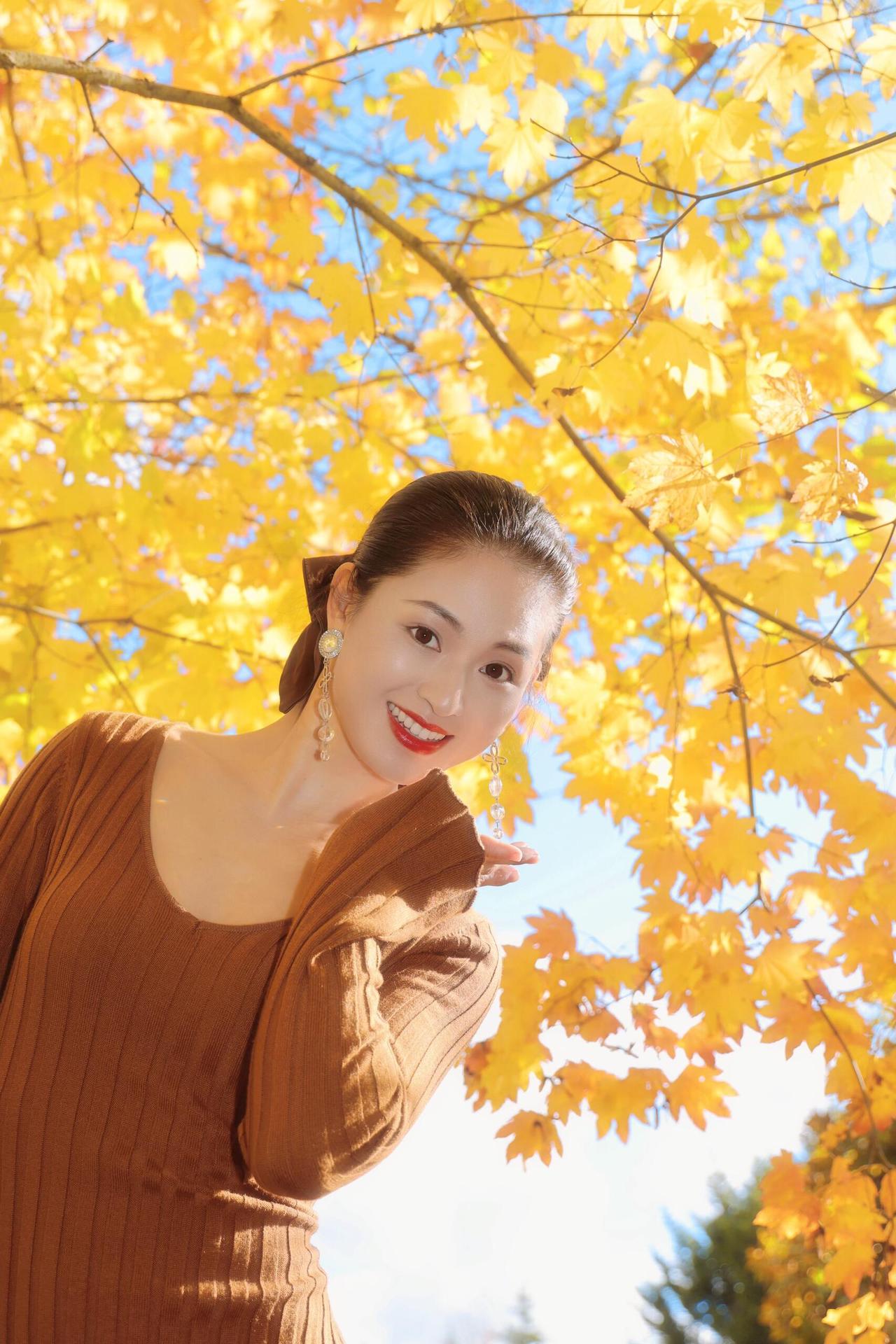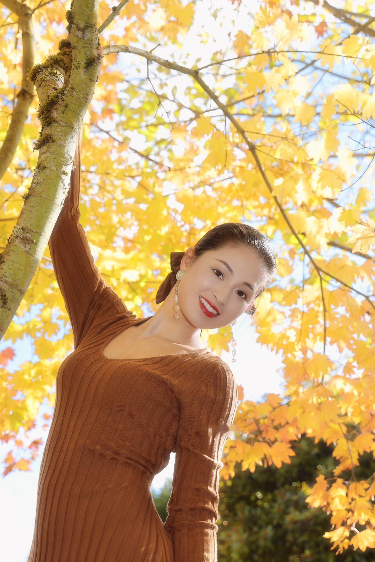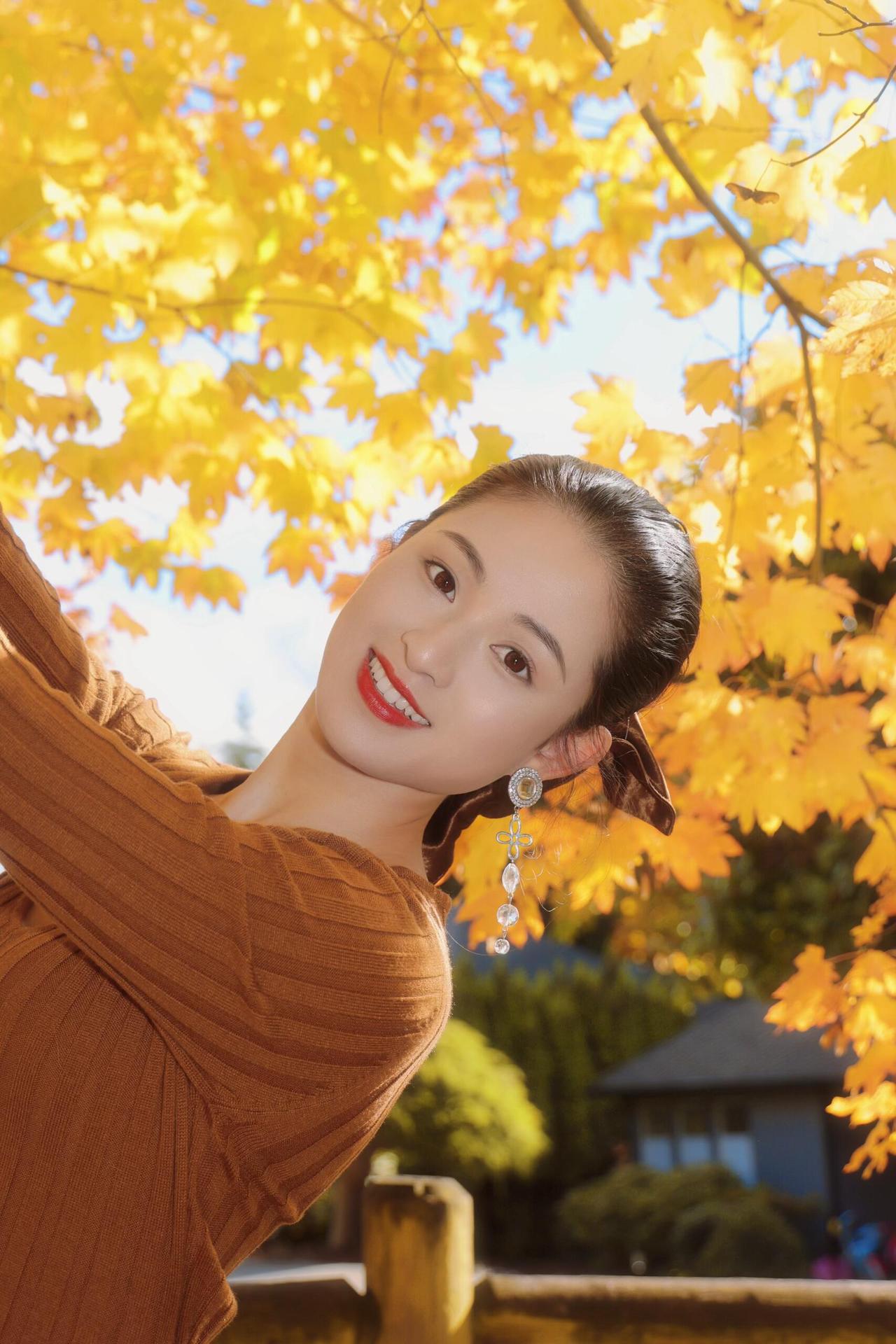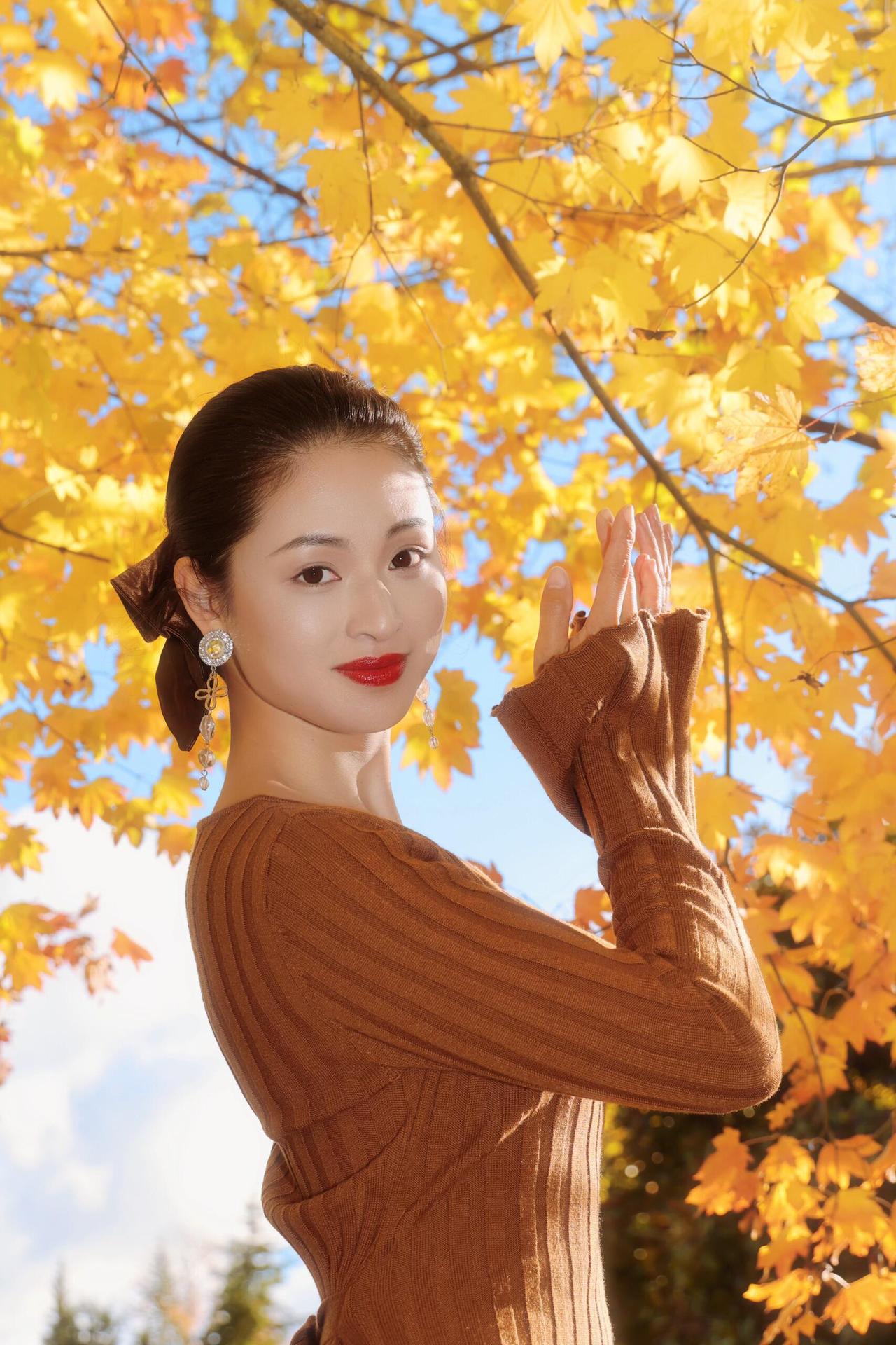 树树皆秋色,风一吹,叶尖就坠着碎金。        我站在这团暖黄里,发梢沾了点秋阳的温度,针织裙的纹路裹着风的软。抬眼时,光斑漏在耳坠的晶亮上,晃得笑意也轻颤。        秋天是裹了糖的诗啊:连呼吸都浸着桂子味的软,连影子都和落叶缠成温柔的结。伸手碰一碰枝桠,掌心里就接住了半季的明黄,像把整个秋天,都拢成了心口的软。 = = = = = = = = = = = = = = = = = = = =       秋日人像摄影思路分享:       ①环境选景:挑午后2-4点的逆光枫林,暖黄叶片当天然柔光罩。       ②穿搭适配:焦糖棕针织裙呼应秋色调,耳饰选透水晶增加灵动感。       ③姿势引导:轻扶枝叶/侧身抬臂,让光影落在肩颈,出片自带氛围感。
