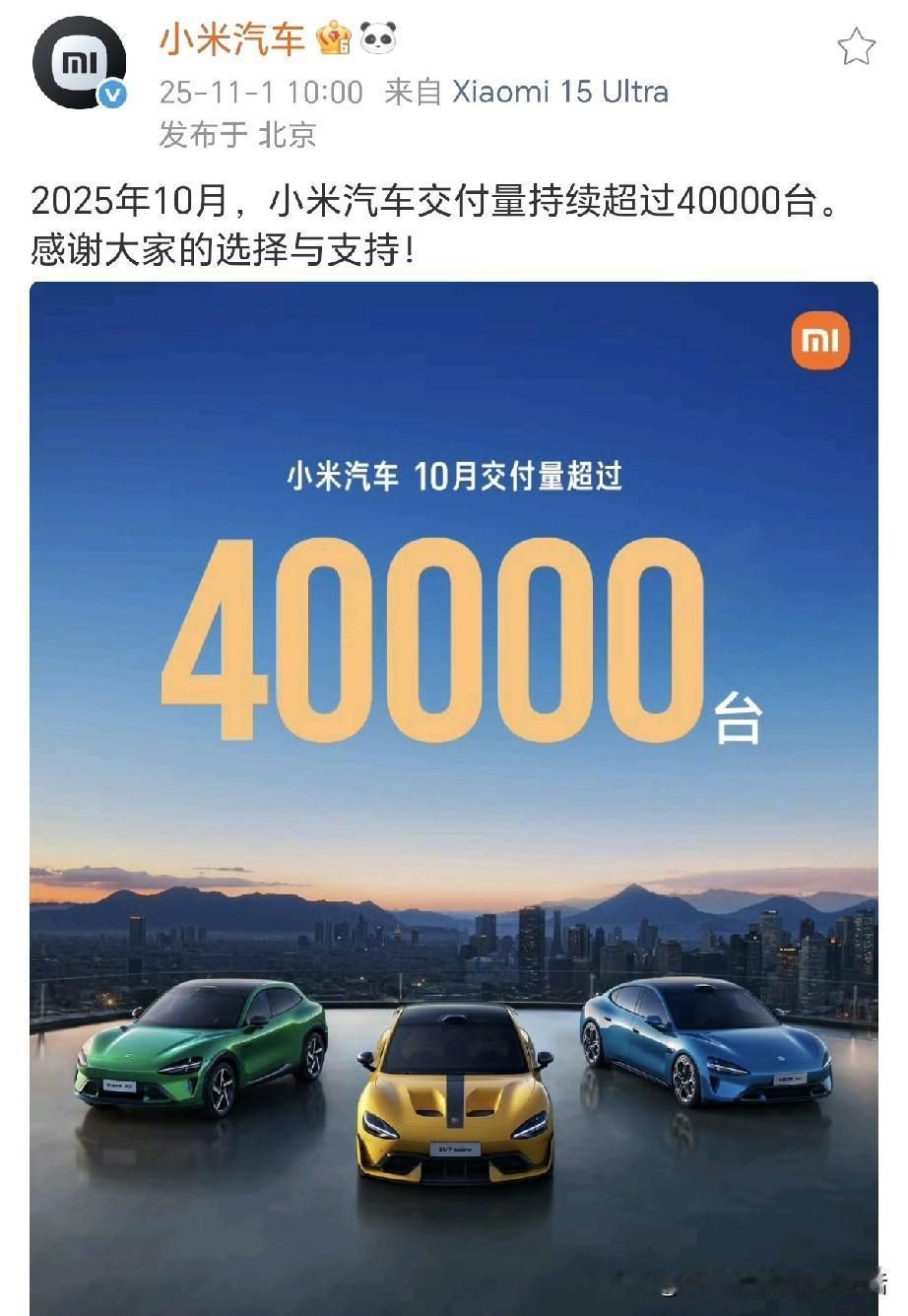 雷军:谢谢大家支持! 恭喜小米,小米双11全渠道累计支付金额破290亿元! 雷总绷不住了,今天一大早,赶在大家还在梦中,还没有起床,5点58分就发小米双11的战报! 虽然今年小米双11的290亿比去年的319亿要低不少,但是小米手机斩获各大平台国产手机销量第一。Xiaomi 17 Pro Max 斩获五大平台6k+国产销量,销额双料冠军!毫无疑问小米的高端手机是成了,而且是越来越稳了! 今年是小米创业15周年,拥有了小米智能家电工厂,小米手机工厂,小米汽车工厂,三座大型智能工厂,6.5秒下线一台空调! 比起小米手机,小米汽车才是让友商绝望,76秒下线一台车!10月份小米yu7销量33662辆,10月国内SUV销量排名第一,小米su7销量14992辆,10月份小米汽车销量48654辆,小米汽车却很低调官宣:2025年10月小米汽车交付量持续超过40000台。 汽车博主都很惊讶地说真的是重新定义了“超过4万台”,10月份实际交付是48654台,我真的……完全裂开 !