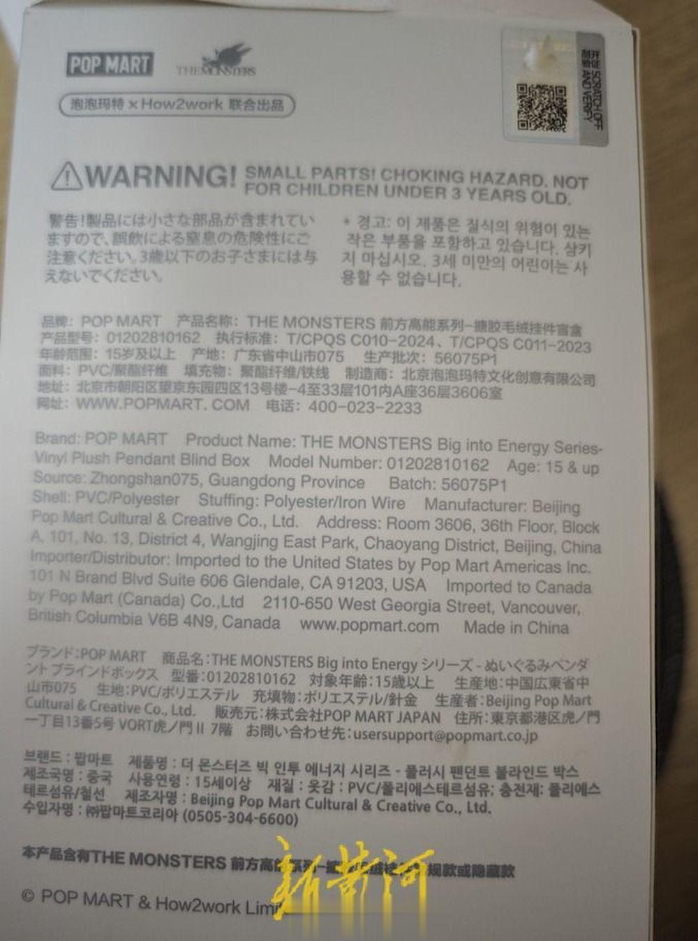 泡泡玛特盲盒的产地较为分散,国内涵盖东莞市、深圳市、绍兴市等地,海外则有越南产地。据了解,泡泡玛特的产品主要通过代工模式生产,江西省赣州市信丰县顺嘉玩具(信丰)有限公司便是LABUBU的生产商之一。但泡泡玛特的包装盒通常未明确标注生产商信息,仅标注制造商为北京泡泡玛特文化创意有限公司,产地则以“省市+数字代码”的形式标注,例如“广东省中山市075”。记者就数字代码的具体含义咨询泡泡玛特客服人员,对方未给出正面回应。