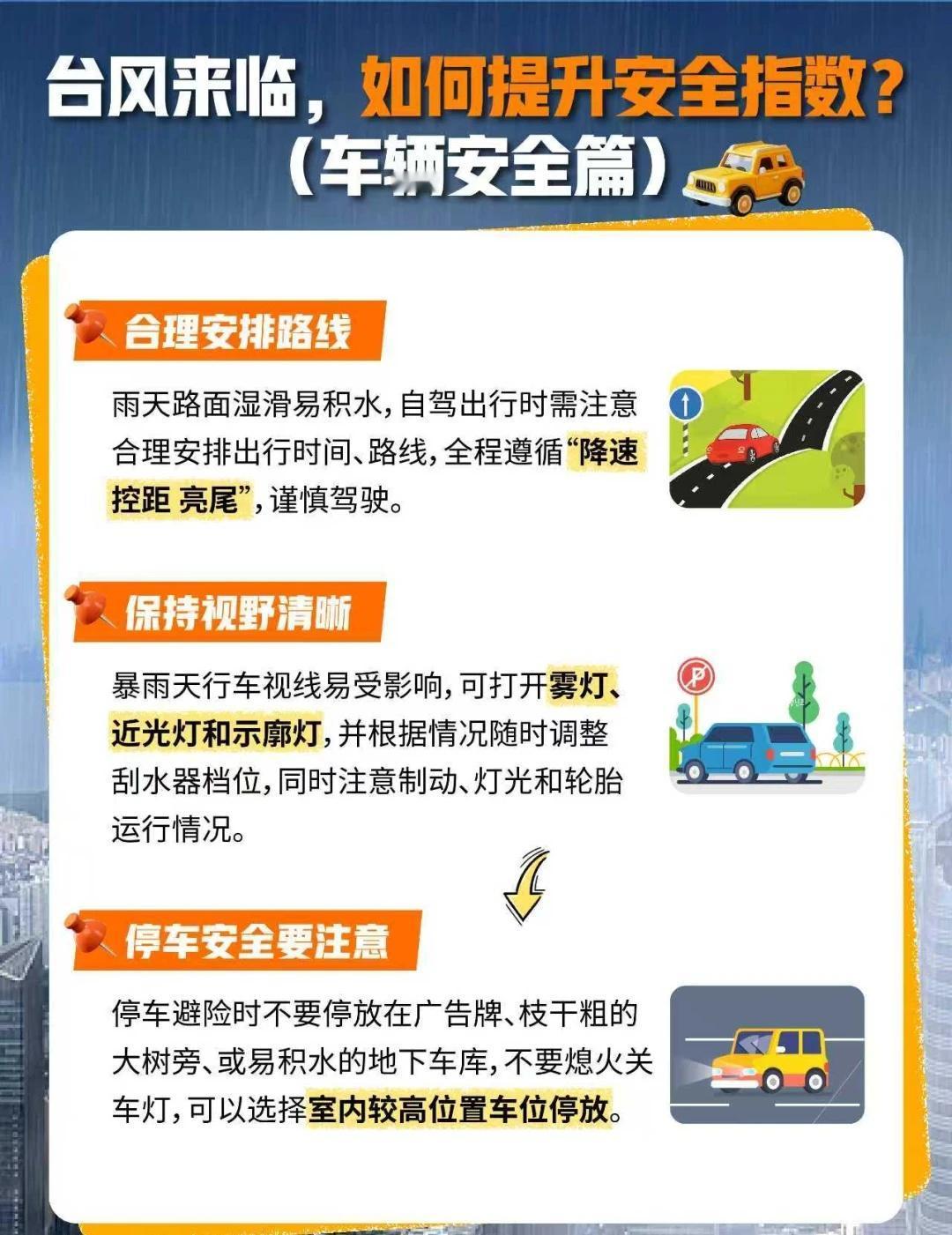 “凤凰”已升级为16级,这几天出门千万小心 🌀今年第26号台风“凤凰”已进入我国24小时台风警戒线,或于12日前后登陆台湾沿海 📢受台风影响,广州铁路部分列车停运,有乘高铁出门的朋友记得查询列车运行有无变动,避免出行受阻! 🌧台风还可能给福建、广东多地带来降水,开车出行全程记得做好防范,避免路面湿滑、积水等给我们的人身、车子等财产造成损害 👇速码了近几天出行安全防范小妙招: 1️⃣人身安全怎么护?→P2 2️⃣车辆安全注意啥?→P3 ⚠️目前来看,深圳、广州等地已对台风启动不同等级预警信号和措施 ☁建议多关注气象预报、做好应对措施 🚗台风临近,车已经停在安全的地方了吗? 🪵有没有什么最佳停车地点可以分享给我们? ⚡如果车辆泡水、遭受灾害,可以点击下方咨询按钮,小助手1v1为您服务~ 省心省时又省钱 局部地区降雨 雷暴大风冰雹等强对流天气 平安好车主 凤凰台风 高铁停运 凤凰台风动态追踪 雨天开车 行车安全