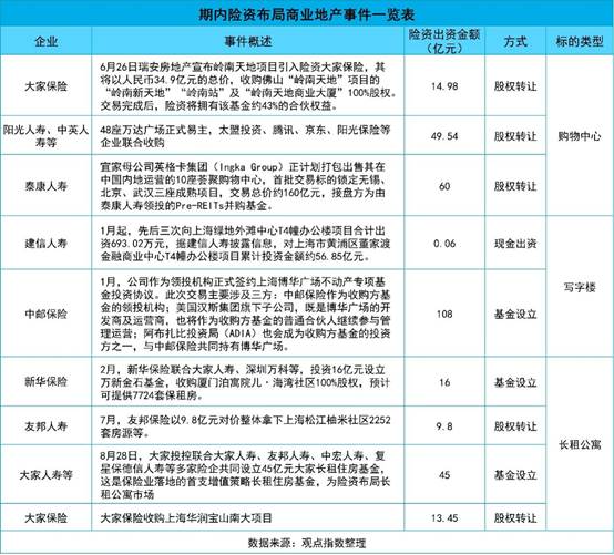 再到去年由央行和金融监管总局发布的《关于金融支持住房租赁市场发展的意见》中,提及重点支持自持物业的专业化、规模化住房租赁企业,险资可通过债权、股权等方式参与长期租赁住房的投资、开发和运营,险资参与不动产市场的政策门槛不断放开。