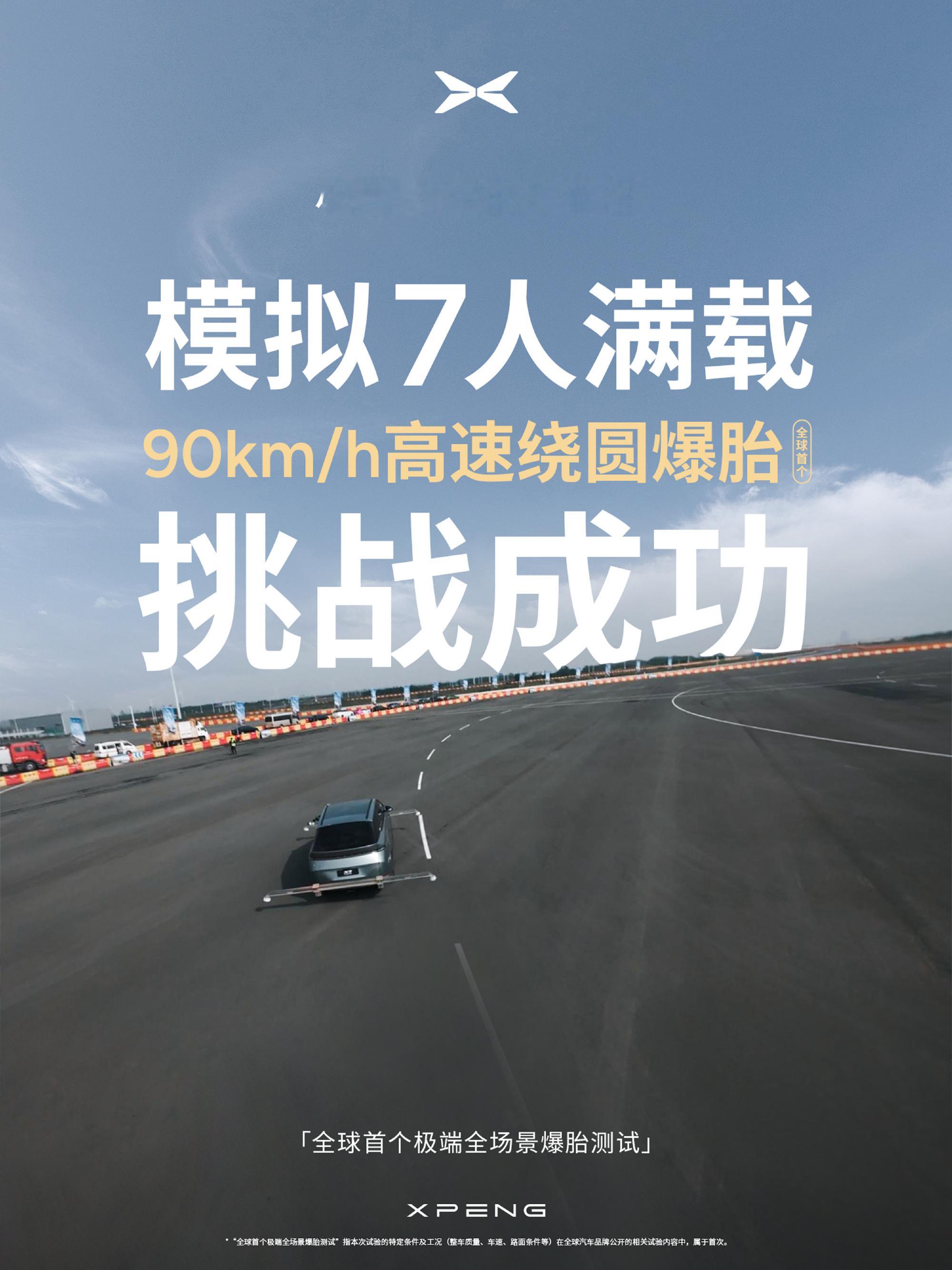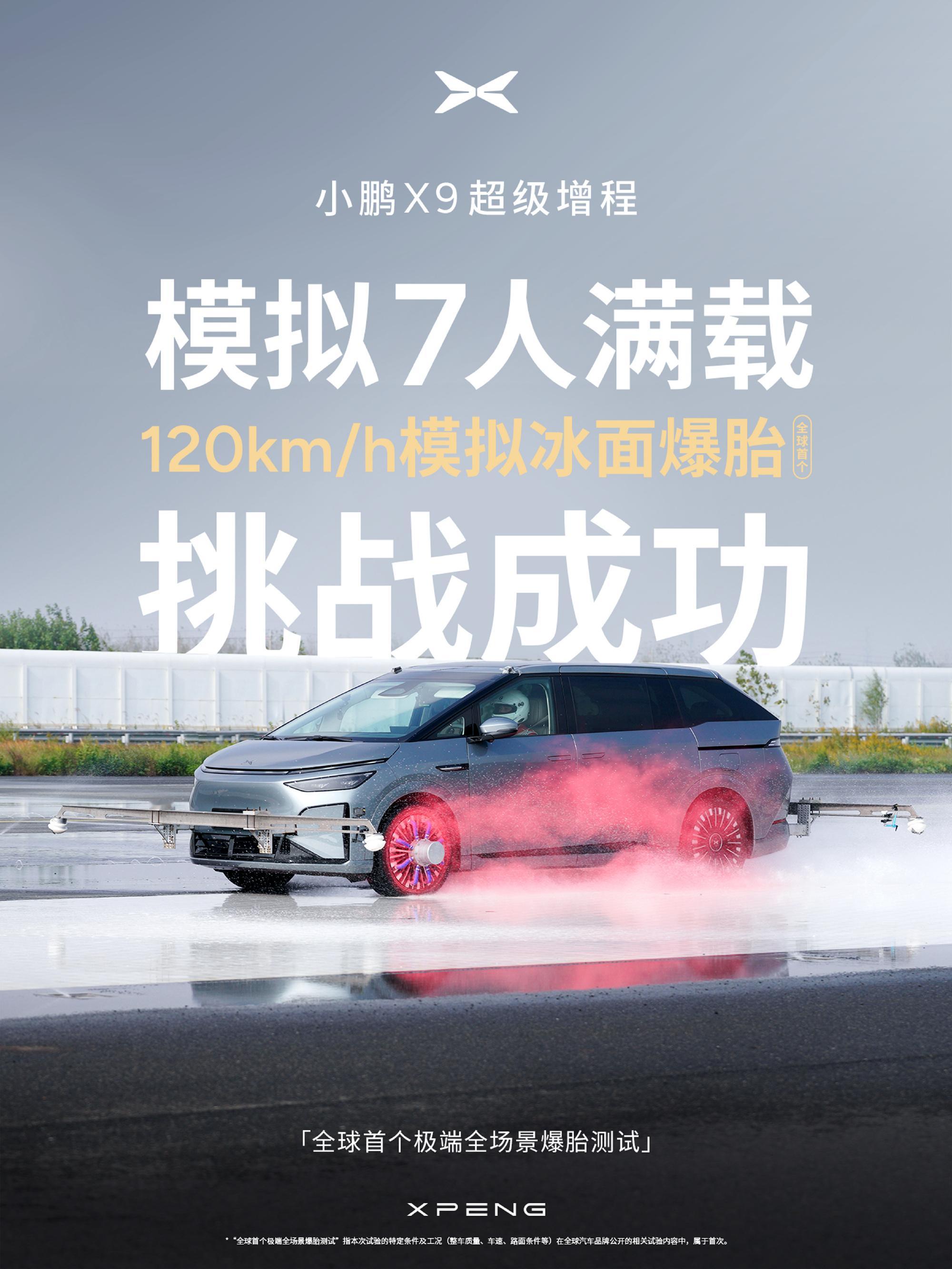 小鹏X9超级增程 | 全球首个极端全场景爆胎测试5大场景+6大极限工况+7人满载,全车总重达3.324吨,爆胎测试全通关!✅160km/h 积水路面爆胎 ✅150km/h 暴雨天气爆胎 ✅150km/h 同侧双轮爆胎✅120km/h 模拟冰面爆胎 ✅90km/h 高速绕圆爆胎 ✅60km/h 雨天下山急弯爆胎 我们坚信安全不只是技术参数,更是经得起考验的安心守护。