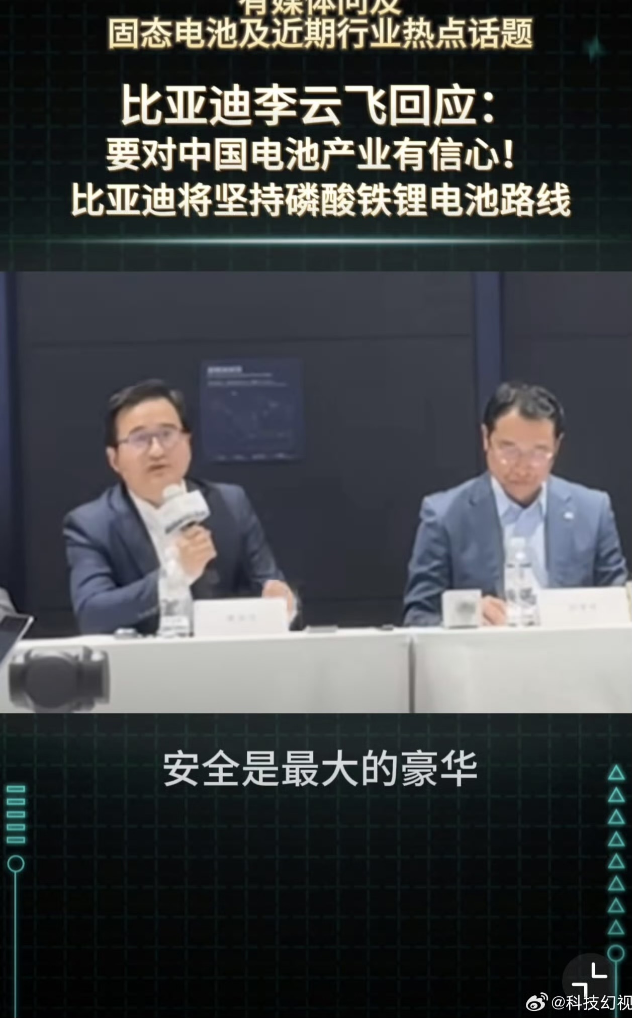 安全才是最大的豪华!在近期行业关于电池技术路线的讨论中,比亚迪李云飞表示,中国动力电池产业体量大、资源足、研发强,发展全球领先,应对行业保持信心。尽管固态电池等新技术受关注,但现有电池方案基础扎实、配套完善,已能充分满足使用需求,且冬季保温等技术持续进步。