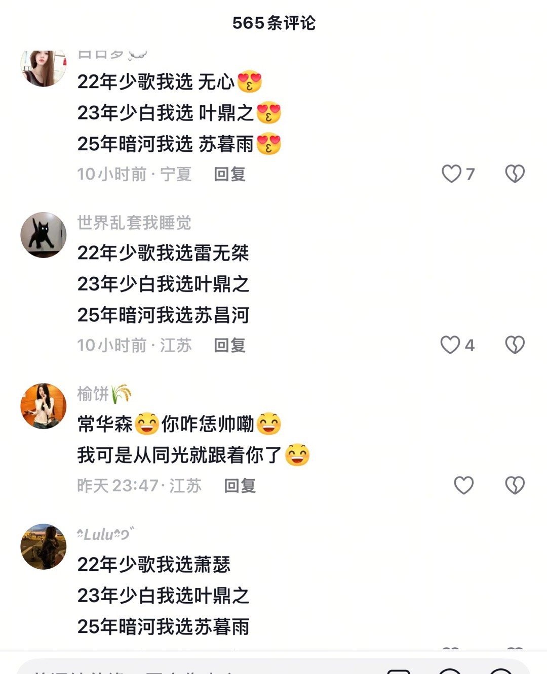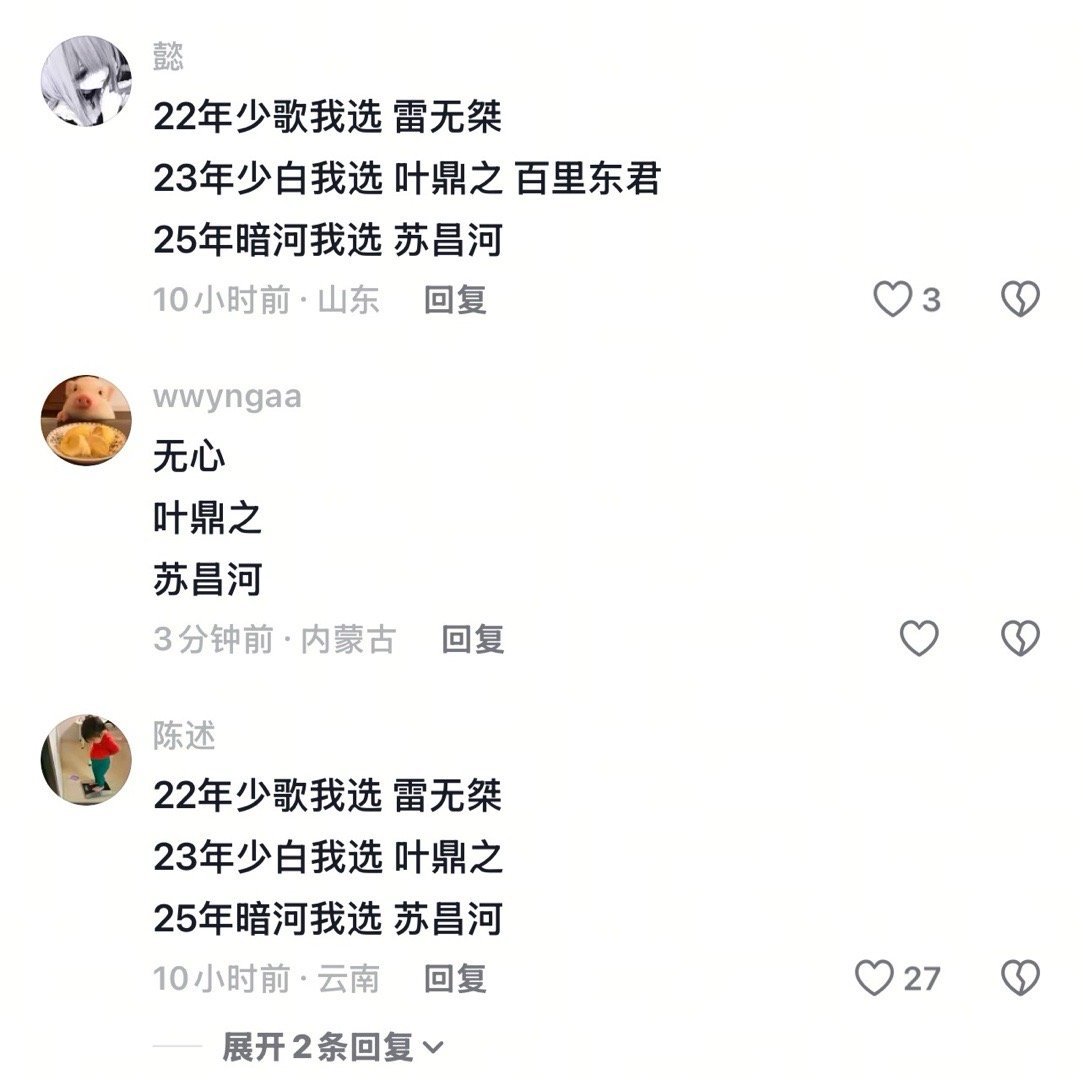 光看这个评论区就知道周木楠的少年江湖系列确实很群像,少歌和少白都是选男二或者其他