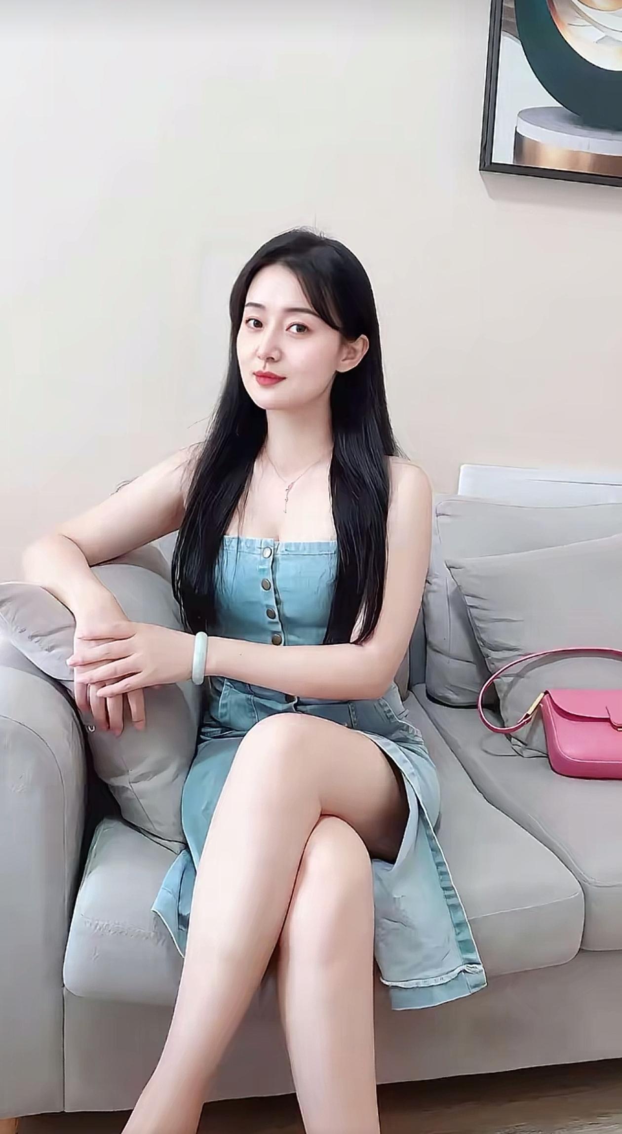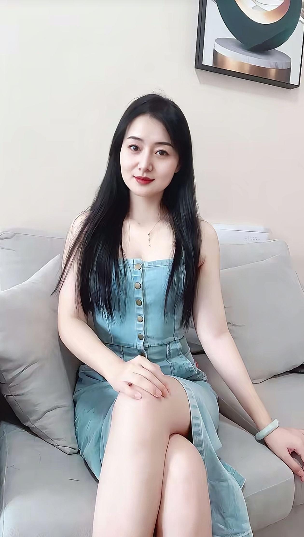 清新夏日穿搭,牛仔连衣裙搭配自然妆容,轻松自在。