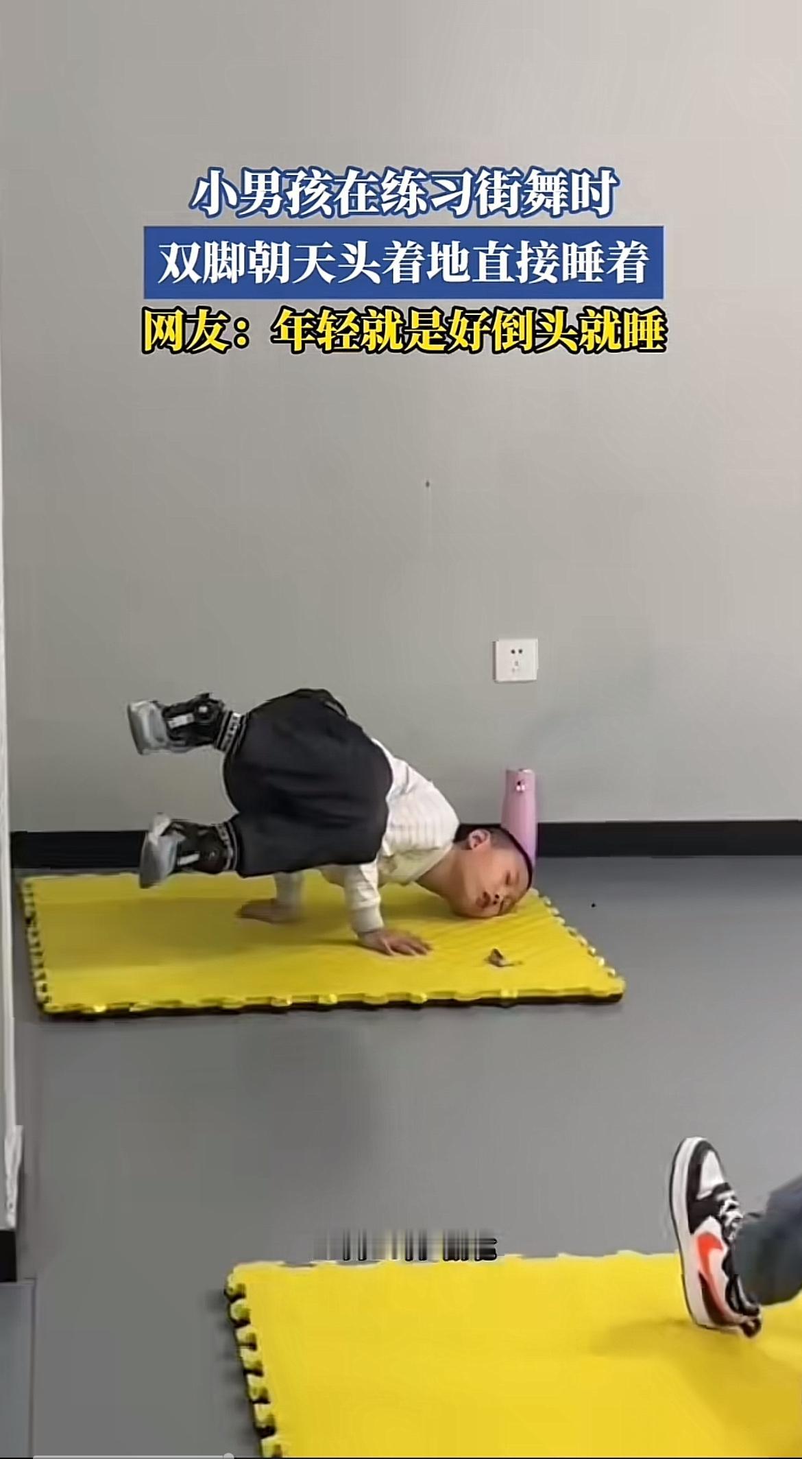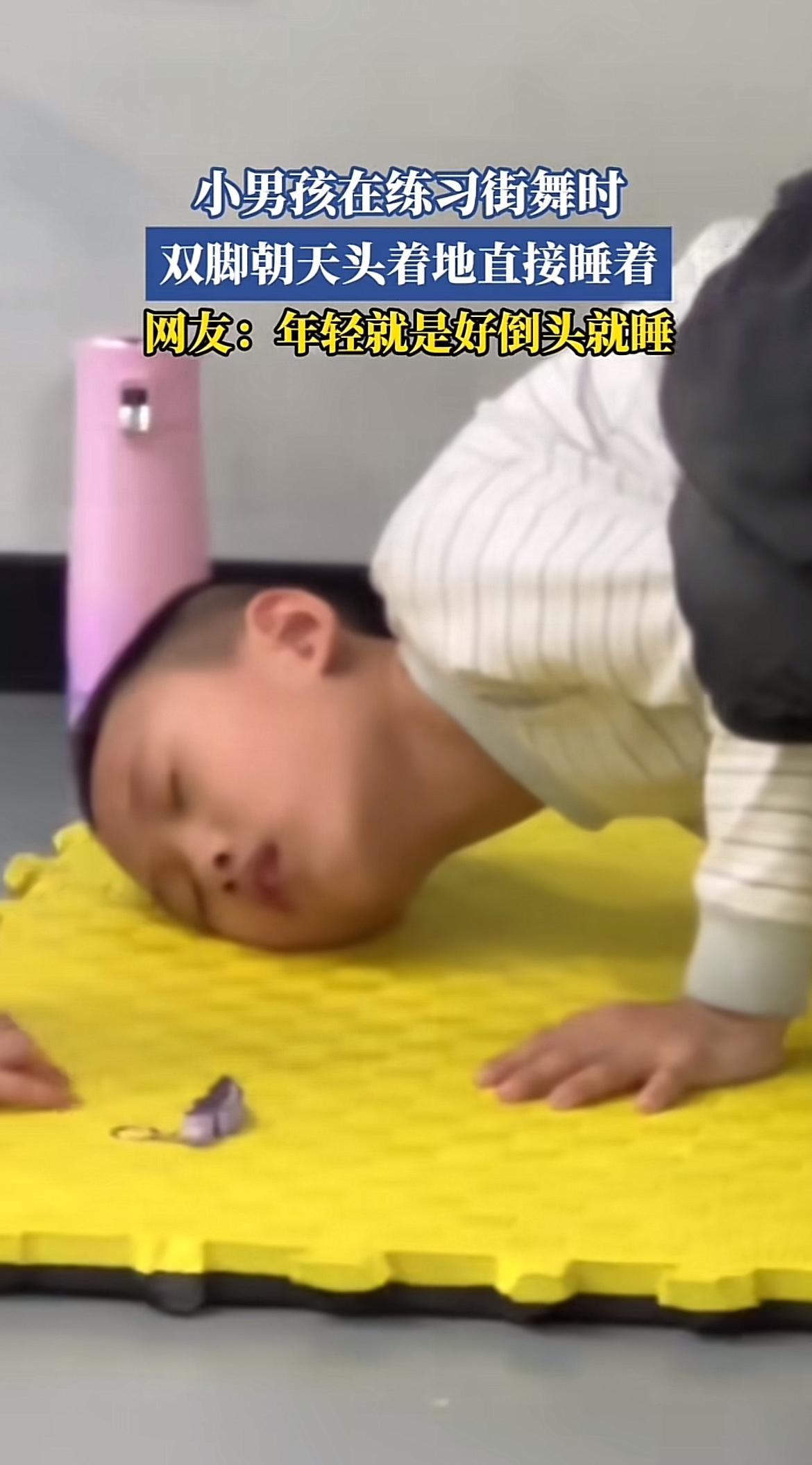 练习街舞的时候看到小家伙跳着跳着倒头就睡,真是又好笑又可爱。之前也看到过小孩跳舞跳一半悬空睡着,旁边小孩都看呆了的视频。小孩子精力看似无限,其实跳累了也是说睡就睡。 想想咱们年轻的时候,好像也是这样,活力满满,又蹦又跳,玩累了倒下就能睡着。可随着年龄增长,就没这本事了,熬夜蹦跶一下,几天都缓不过来。不得不说,年轻真好,能在热爱的街舞练习里尽情挥洒汗水,累了还能毫无负担地睡去。