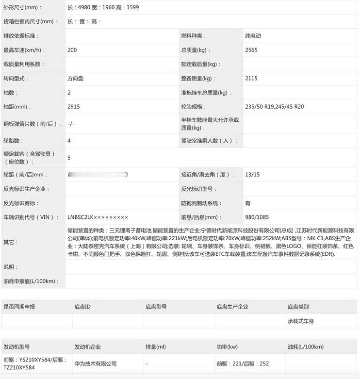 日前,汽节车社在工信部看到了极狐阿尔法S6四驱版车型申报图。 新车采用前后双电机,外观延续现款车型设计,新车定位为一款中大型纯电动车,车型尺寸与三激光雷达版车型相同,预计也将搭载华为辅助驾驶系统。 动力方面,四驱车型前电机最大功率221千瓦,后电机最大功率252千瓦,电机来自华为,匹配宁德时代磷酸铁锂电池,最高车速200km/h。 现款车型仅提供两驱版本,售价19.58-24.98万元。 点个关注吧!汽节车社,车圈热点资讯每日一扫清!【来自懂车帝车友圈】
