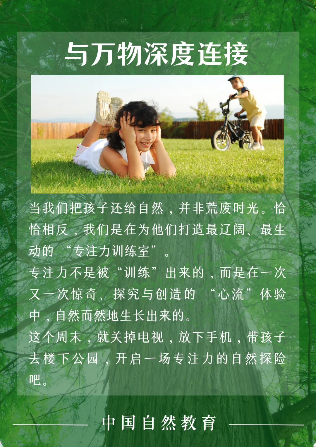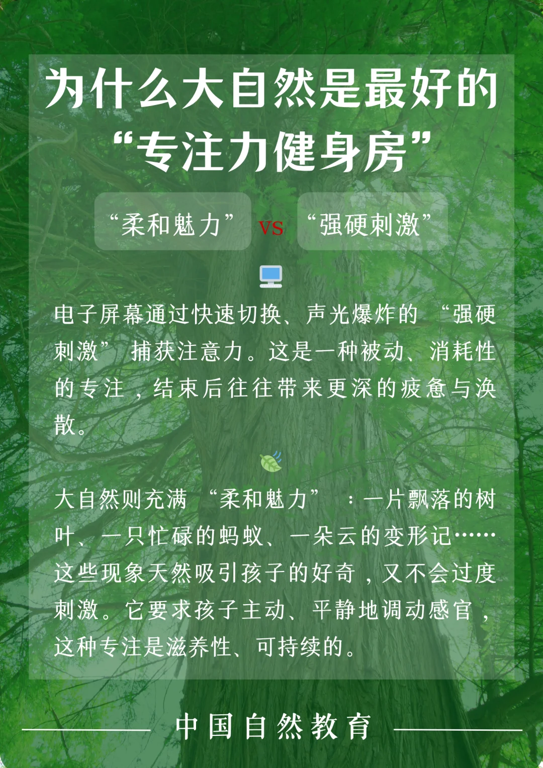 科普知识|别让“自然缺失症”偷走孩子的专注力 当我们把孩子还给自然,并非荒废时光。恰恰相反,我们是在为他们打造最辽阔、最生动的 “专注力训练室”。在这里,专注力不是被“训练”出来的,而是在一次又一次惊奇、探究与创造的 “心流”体验中,自然而然地生长出来的。