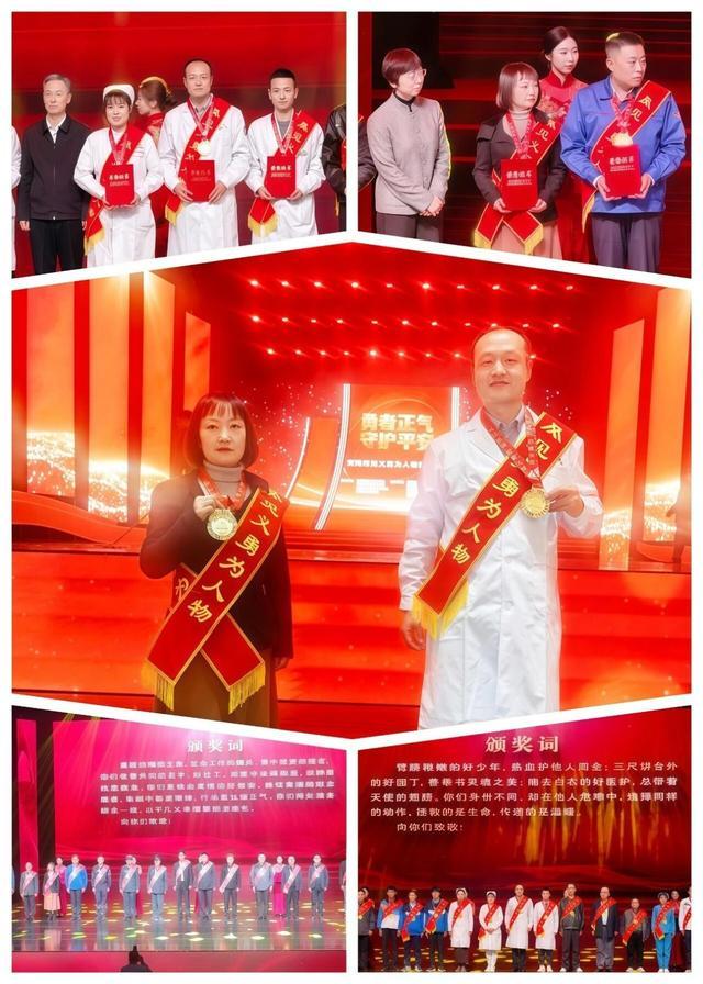 阳光讯(记者张伟通讯员张璐)2025年11月10日晚,宝鸡大剧院举行“勇者正气守护平安”见义勇为人物颁奖典礼。宝鸡市第二人民医院普外科主治医师田景刚同志和保卫科干事李艳同志荣获“见义勇为人物”称号,以平凡义举彰显二院担当,为全院赢得荣誉。