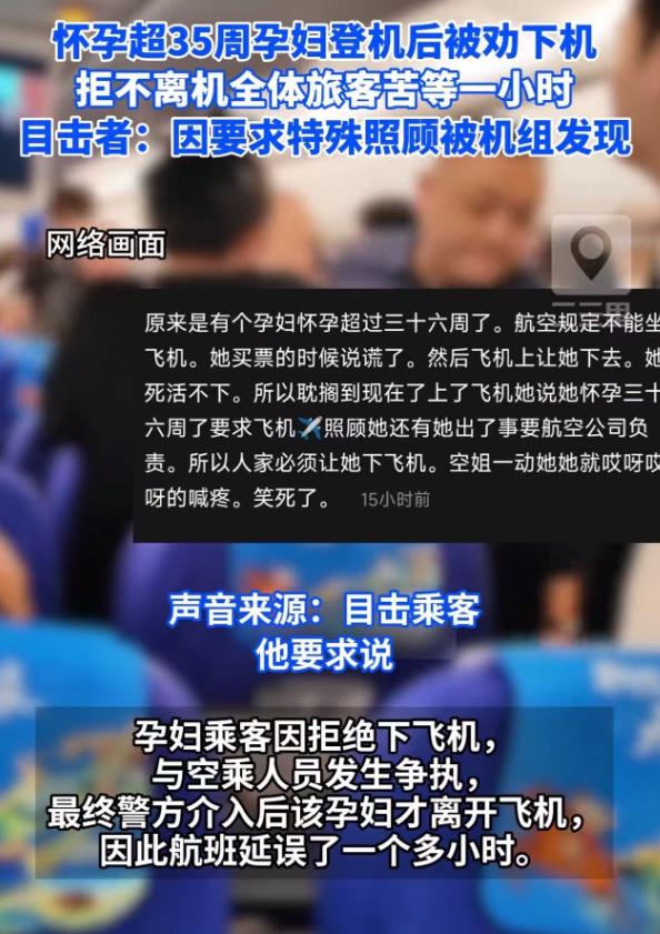 “孕妇凭一己之力,连累整架坐飞机的人!”女子购票时隐瞒自己怀孕超35周,登机后又要求机组特殊照顾!整个机组劝说女子下飞机,但女子拒不离机,航班因此延误一个多小时!网友:精致的利己主义者,完全不拿别人的时间当时间! 11月10日傍晚,成都双流机场,西藏航空TV9975次航班舱门缓缓关闭,乘客们放好行李坐定,不少人盯着手机确认后续行程,没人想到一场闹剧即将开始。 就在飞机准备滑行时,前舱突然传来争执声,一名女子对着空乘抬高声音,说自己怀孕36周,要求特殊照顾,还撂下话:“飞行中出任何问题,航空公司全权负责”。 这话让空乘瞬间紧张,西藏航空早有规定,怀孕满35周就不提供运输服务,高空气压变化和颠簸可能引发早产,机舱里根本没有产科急救设备。 机组赶紧围过来劝说,拿出规定解释风险,甚至提出派专人陪她去医院检查,可女子油盐不进。 空乘往前凑一步想扶她,她立刻捂着肚子喊疼,摆明了“碰瓷”姿态,一旁的丈夫全程沉默,像个局外人,没说过一句劝和的话。 时间一分一秒过去,机舱里渐渐起了骚动,后排乘客纷纷站起来往前看,有人忍不住抱怨:“我们赶火车的,误点谁负责?”“她自己瞒孕情登机,凭啥拖累所有人?” 原本17时15分的起飞时间早过了,机舱广播反复播报延误通知,有人急得直跺脚,有人打通电话连连道歉改约行程。 机组沟通了近一个小时,女子死死占着座位不肯动,最后没办法,只能报警,当警察走进机舱时,女子才不情不愿地跟着丈夫起身,临走还满脸不服气。 此时离计划起飞时间已经晚了90分钟,航班终于在18时46分冲上天空。 事后航司明确回应,延误是旅客个人原因导致,不给其他乘客补偿,客服解释,就算是32到35周的孕妇,也得拿72小时内的医院证明才能登机,这名女子购票时压根没申报孕周,更别提合规证明了。 这事传到网上,网友骂声一片,有人说这是典型的精致利己主义,购票时藏着掖着,登机了倒要特殊待遇。 有人戳破关键:“真为孩子好,就该选更安全的出行方式,高空出事可不是闹着玩的”,律师也站出来说,要是其他乘客因为延误丢了生意、误了急事,完全能找她索赔。 其实航司的规定从不是冷血,每个看似“不近人情”的条款背后,都藏着过往的教训。 高空急救难度极大,一旦孕妇在飞机上早产,不仅母子危险,整架飞机都得紧急备降,牵连的更是上百人的安全与时间。 这名女子的糊涂在于,把公共安全当成了可随意突破的底线,想占便宜时隐瞒规则,要保障时又搬出“特殊身份”,这种双重标准在公共场合行不通,机舱不是私人空间,每个人的便利都得建立在遵守规则的基础上。 航班落地时,夜色已经笼罩机场,那些被耽误行程的乘客或许还在奔波,但这件事该给所有人提个醒:规则面前,没有“不出声就没事”的侥幸,更容不得把个人私利凌驾于公共秩序之上。