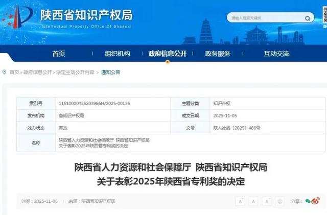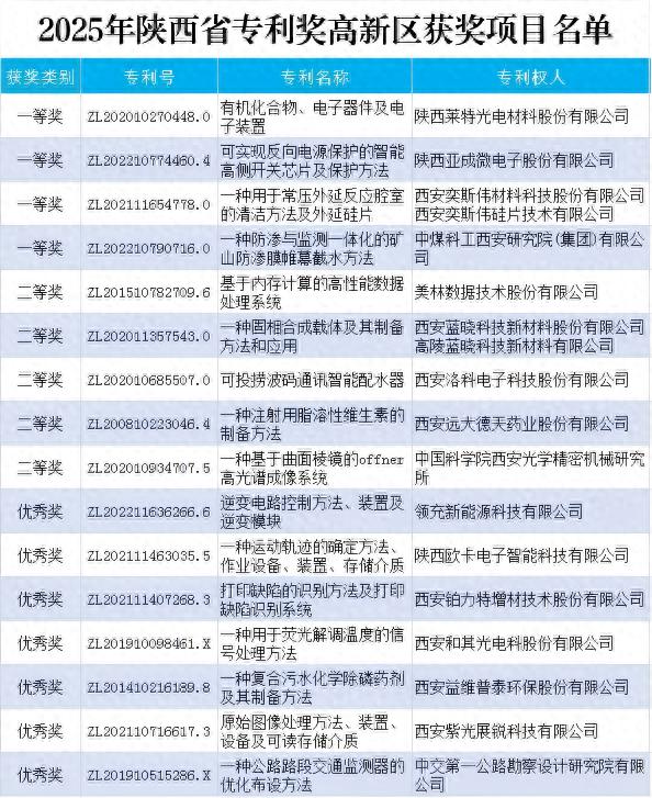 近日,陕西省人力资源和社会保障厅、陕西省知识产权局联合发布《关于表彰2025年陕西省专利奖的决定》,西安高新区表现突出,共有16项专利获奖,包括一等奖4项、二等奖5项、优秀奖7项。