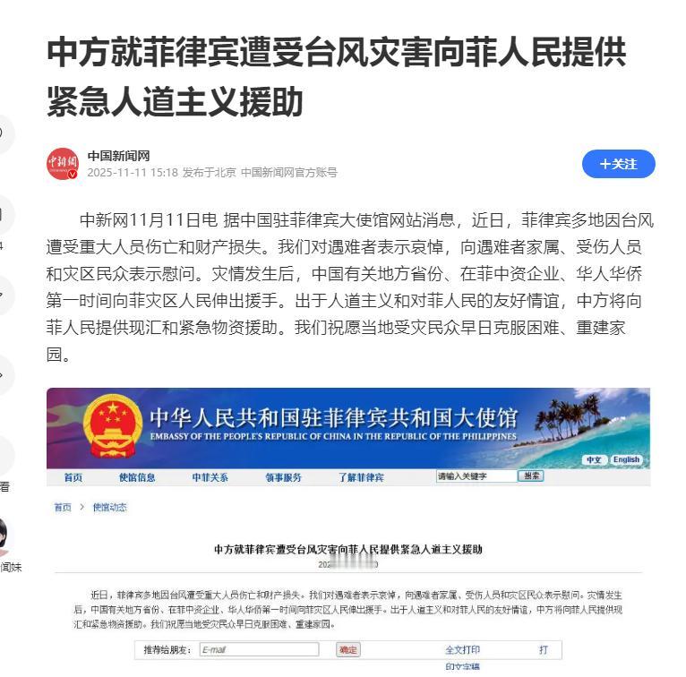 菲律宾小马斯科当局会领情吗?11月11日,中国驻菲律宾使馆通报,中国将向受台风灾害影响的菲律宾人民提供人道援助。中国将向菲人民提供现汇和紧急物资援助,祝愿当地受灾民众早日克服困难、重建家园。 宿务省的河边,搜救队还在陆续找到遇难者的遗体。就说科特科特村的布格泰家,刚给六口人办完葬礼,剩下四口亲人还在失踪名单上,这就是台风“海鸥”扫过菲律宾后,灾区最让人揪心的样子。 到11月8号的时候,这场台风已经带走204条命,109人找不到了,291万人受了灾,快3万间房子被冲垮,连医院、学校都塌了157所,地里的庄稼毁了,算下来农业损失都超过480万人民币。有灾民对着镜头哭,说洪水来之前没个准信儿预警,水涨起来连橡皮艇都见不着,一开始是伤心,到后来早变成对政府救援不力的失望了。 就在菲律宾人最缺东西、最盼有人搭把手的时候,咱们中国递去了暖意。11月11号,中国驻菲律宾大使馆明确说了,要给他们送现钱和急用的物资,国内一些和菲律宾结好的省份,也在通过自己的渠道加把劲帮忙。这真不是咱们第一次帮他们,以前菲律宾遭强台风、闹地震的时候,咱们的救援物资和钱,从来都是及时送到灾区,绝不是光喊口号不办事。 可再看看小马科斯政府一直盼着靠上的美西方国家,这次算是把真面目露透了。台风登陆都快十天了,那些平时跟菲律宾称兄道弟,说什么“合作伙伴”的国家,除了说几句不走心的“节哀”,连一分钱的真金白银都没掏。灾民急着用的帐篷、饮用水、救命药,连美西方的影子都没见着,他们说的“支持”,比台风过后的空氣还虚。 现在大伙最关心的就是,小马科斯政府会不会领这份情?说真的,他们没道理不领。眼下灾区的老百姓本来就一肚子火,连政府的预警和救援都在骂,这时候咱们的援助可不是冷冰冰的数字,是能搭起来遮风挡雨的帐篷,是能填肚子的食物,是能救命的药品。这些东西一送到灾区,拿到救援包的菲律宾人,都能明明白白知道是谁在真帮忙。 当然了,菲律宾的政客们,向来就有爱左右晃的毛病,有时候为了讨好美西方,难免搞点小动作。但老百姓的日子才是根本啊,291万受灾的人都看着呢,谁好谁坏门儿清。咱们中国帮人从不提条件,不像美西方那样,给点好处就逼着人家答应这答应那。 以前菲律宾每次遭灾,咱们都没落下,2023年台风“海燕”过后,咱们是最早派救援队过去的国家之一;去年他们那边地震,急用的物资三天就送到了棉兰老岛。 其实小马科斯政府该想明白一个理儿,邻居的真心,比远房亲戚的空头支票管用多了。美西方离得远,平时就想着在南海挑点事捞好处,真等菲律宾要帮忙了,立马缩脖子;咱们中国和菲律宾隔海相望,是实打实的邻居,灾时送援助是真心实意的情分,平时做生意也能让菲律宾老百姓多挣钱。 这次的援助已经在路上了,现钱能帮菲律宾政府应急,帐篷、药品正好解灾民的燃眉之急。小马科斯政府要是脑子清楚,就该把这份情记在心里,少听美西方瞎忽悠,多做些让中菲老百姓都得好处的事。说到底,谁是真帮忙,谁是在作秀,菲律宾老百姓最清楚,答案就印在灾区的救援物资上,写在每个获救者的笑脸上。