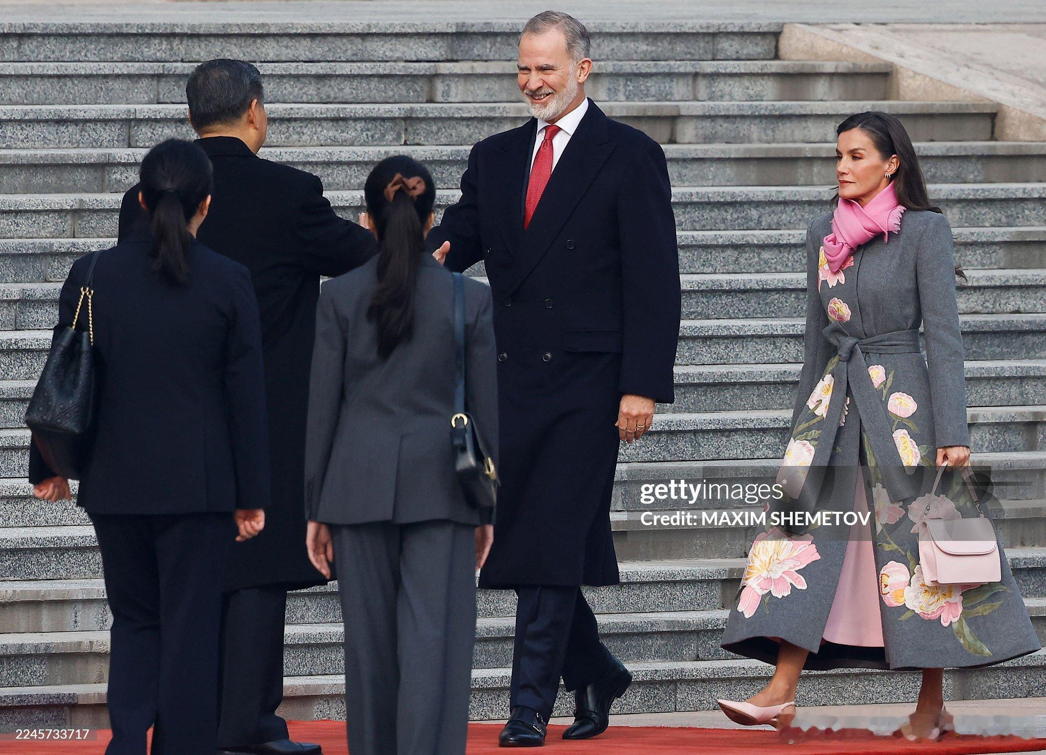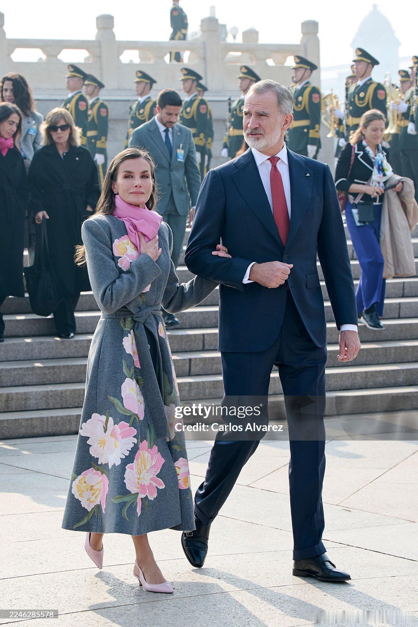 2025.11.12 西班牙国事访问🇨🇳 Day2,欢迎仪式,小莱的新花卉刺绣大衣来自Carolina Herrera,大花很好下次别穿了。