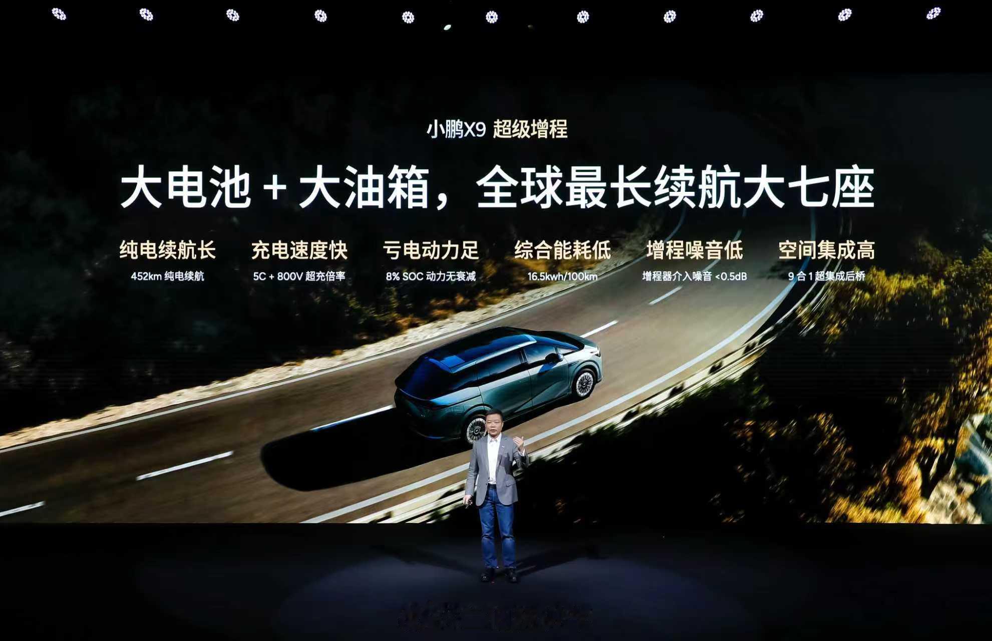 小鹏X9超级增程以1602公里CLTC综合续航,452公里CLTC纯电续航,媲美主流纯电、混动车型,树立全球综合续航最长大七座新标杆:依托行业领先的能耗管理技术,小鹏X9超级增程实现16.5kWh/100km综合电耗,以同电量跑更远距离,展现真技术不在堆料,而在能效。小鹏自营网络覆盖超430城,核心城市每3公里就有小鹏超快充站,随时随地皆可5C充电;支持6kW V2L对外放电、6kW V2V车对车充电功能和车内220V电源,满足露营、车对车补能等家庭出行用电需求,成就真正的"全场景移动供电站"。小鹏X9增程版,补齐了X9最后一个短版,相信增程之后,在海外也会卖爆!