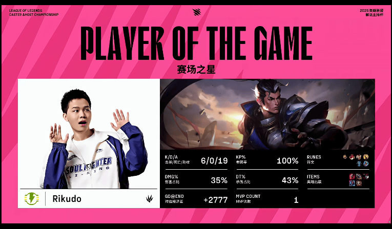 赵志铭使用赵信打出6/0/19战绩,斩获SHB对阵GBS第一局MVP