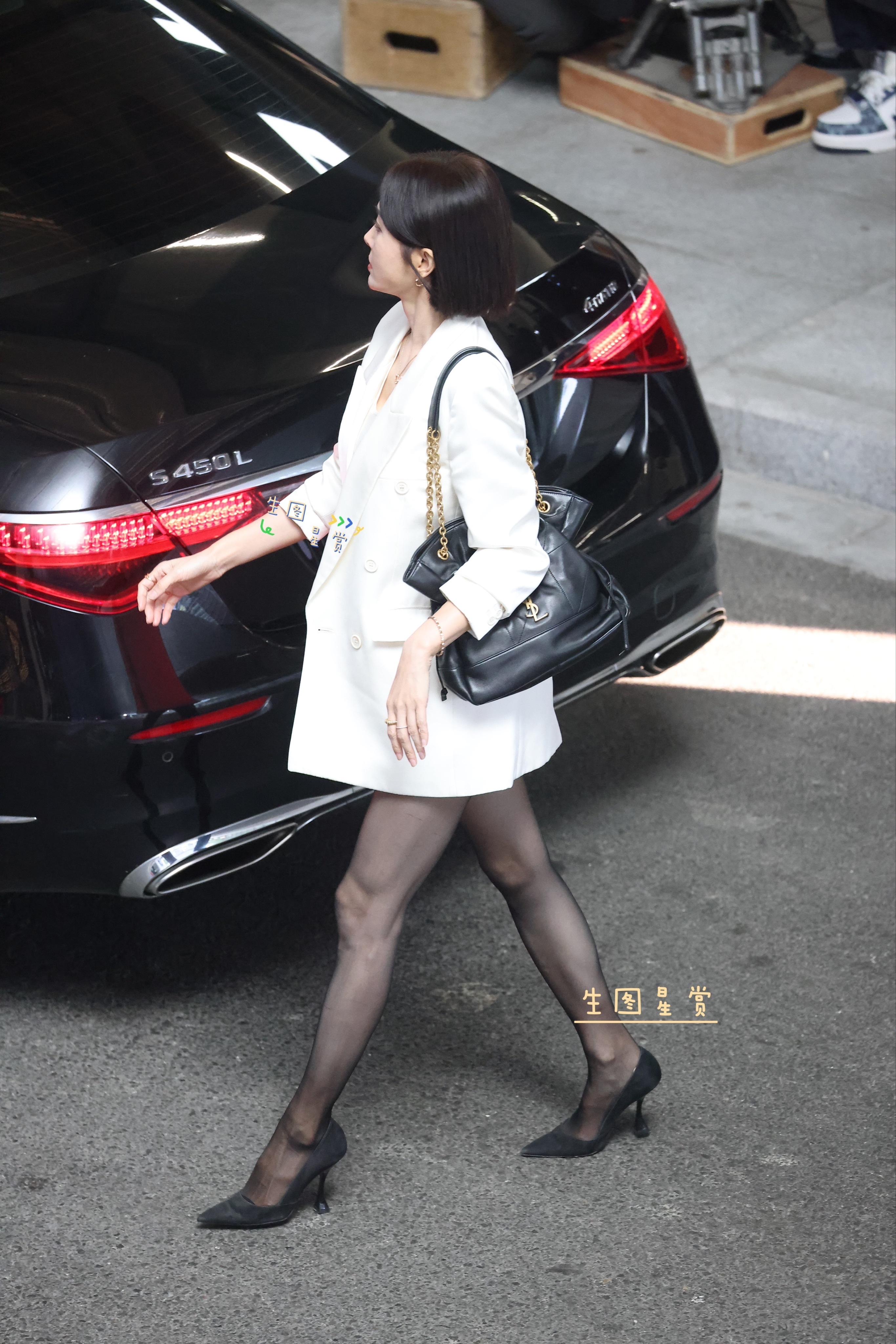 46岁秦岚浙江街头拍戏,黑丝配粉西装又美又飒,身材状态秒杀一众小花46岁的
