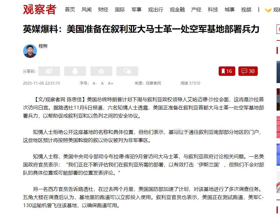 欧洲新闻网消息,当地时间10日,叙利亚过渡政府总统沙雷宣布,大马士革已和美方达成共识,我们将允许美军在叙领土上重新部署,并实现长期驻扎,同时还允许美军部队,和叙安全部队,共同协调打击境内恐怖主义势力。   沙雷接受采访的时候说得特实在:“美军在叙利亚待着,这事儿完全合理,我们需要美国帮着搞军事支持,把那些威胁老百姓安全的极端组织给灭了。”这话听着像是求帮忙,但了解叙利亚情况的人都知道,这其实是过渡政府没办法了,毕竟他们2024年12月才在大马士革掌权,现在正卡在内外都难办的坎儿上。   先说说最头疼的恐怖主义问题,这可不是沙雷随便找的借口。自从2024年底阿萨德政权倒台、过渡政府接盘后,“伊斯兰国”就跟没人管的野草似的,又冒头了,而且闹得挺凶。今年6月22号,大马士革东部教堂发生了自杀式袭击,极端分子先开枪,然后引爆了炸弹,一下就死了25个人,这是政权变了之后最严重的一次恐怖袭击。   到了代尔祖尔省就更离谱了,当地武装的负责人都说,“伊斯兰国”的人早就混进老百姓里了,截止到8月底,这儿发生的袭击次数,比2024年一整年还多40多起,还有三千多个武装分子躲在沙漠里,等着找机会搞事。更要命的是,以前政权留下的武器库被人抢了,黑市上50美元就能买一把AK-47,恐怖分子根本不愁没武器用。   过渡政府手里能打的牌其实没多少。刚掌权还不到一年,国内的基础设施被炸得稀巴烂,十几年的内战加上西方的制裁,把钱都掏光了,连安置难民的钱都凑不出来。安全部队更是忙不过来,一边要盯着那些还没交枪的武装派别,一边还得应对到处都是的恐怖袭击,是真顶不住了。这种时候找美国要军事支持,多少有点“病急了找帮手”的意思。   但美军这个帮手可不能白请。要知道之前俄罗斯一直骂美军在叙利亚是“占领军”,因为以前美军在坦夫基地的驻军,根本没经过原来的叙利亚政府同意,还控制着叙利亚、约旦、伊拉克三国交界的交通要道,表面上是训练反对派,暗地里还输送物资。   现在过渡政府主动开门让美军进来,说白了就是一笔“政治交易”,美国给军事支持,大马士革就承认美军驻扎是合法的。而美国心里的小算盘其实更精:既能借着反恐把叙利亚南部的局势稳住,还能拿解除制裁当筹码,拿捏住过渡政府,毕竟过渡政府急着要重建资金呢。   其实过渡政府这么做,也是想活下去。自从上台后,他们就忙着搞外交,部长们挨个去沙特、卡塔尔这些海湾国家,就是想让人家承认自己,再拉点投资。现在抱上美国的大腿,不光能换来军事援助,说不定还能让欧盟解除制裁,毕竟欧洲早就派团队跟叙利亚新政权接触了,就等着找个理由恢复往来。   但这合作的风险可不小,美军在叙利亚有过“黑历史”:当年打着反恐的旗号建了坦夫基地,后来反倒成了支持武装分子的据点,还封锁区域,导致难民营出现人道主义危机。这次会不会再出这种事儿,谁也说不准。   现在的叙利亚就是个烂摊子,过渡政府又要反恐,又要搞重建,还得把各个派系整合到一起,每一步都难走。允许美军驻扎,看着像是解了眼前的急,但能不能真借到力,会不会把“狼”招进来,还得看之后两边怎么博弈。毕竟恐怖分子的威胁是真的,可美国给的援助,从来都不是不用花钱的午餐。