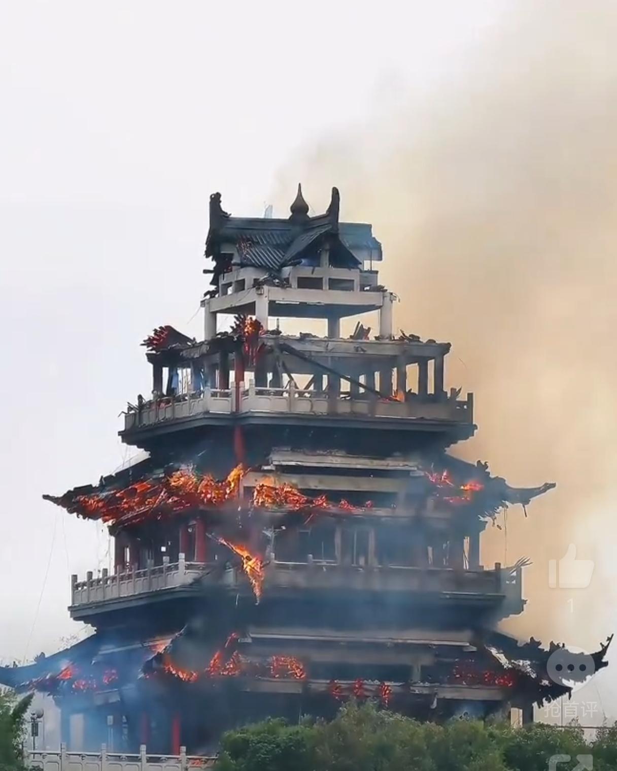本来以为烧了个古寺,还有点惋惜,一看露出的这水泥柱子,只能呵呵🙂了!