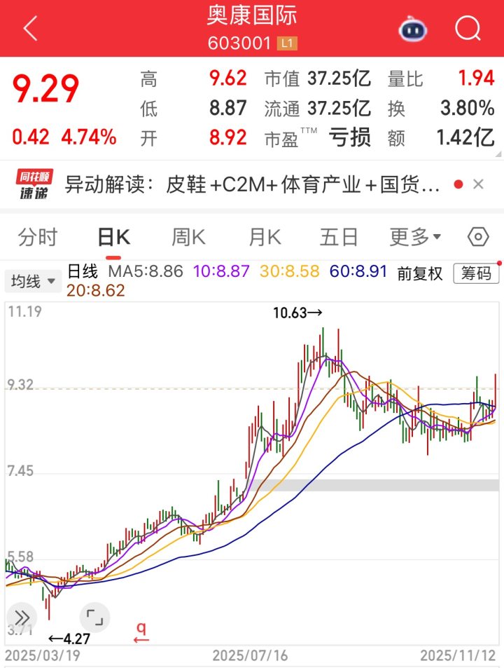 巧的是,奥康国际年内最低价恰好出现在了2024年年报披露日(今年4月16日)的前几天。今年4月8日,奥康国际触及最低价4.27元,随后一路上涨,8月18日触及10.63元的年内最高价。今天奥康国际收盘涨4.74%,报价9.29元/股,年内涨幅34.05%。