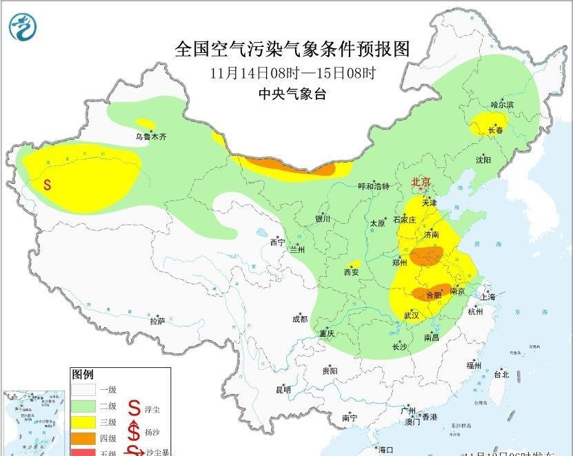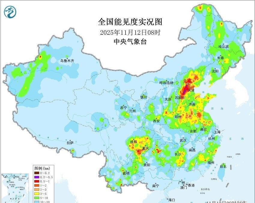 【雾和霾】今晨在京津冀以及四川云南等地出现了大雾。8时部分站点能见度不足100米,比如:河北涿州、固安、安新、安国、云南孟连。从空气质量看,华北部分站点有一定程度的污染,混合有霾。今天白天京津冀以及黑龙江一带还有霾,今晚-明天随着冷空气东移南下,东北华北的大气扩散条件好转,但部分污染会向南传输,导致河南山东安徽湖北部分地区可能出现霾。