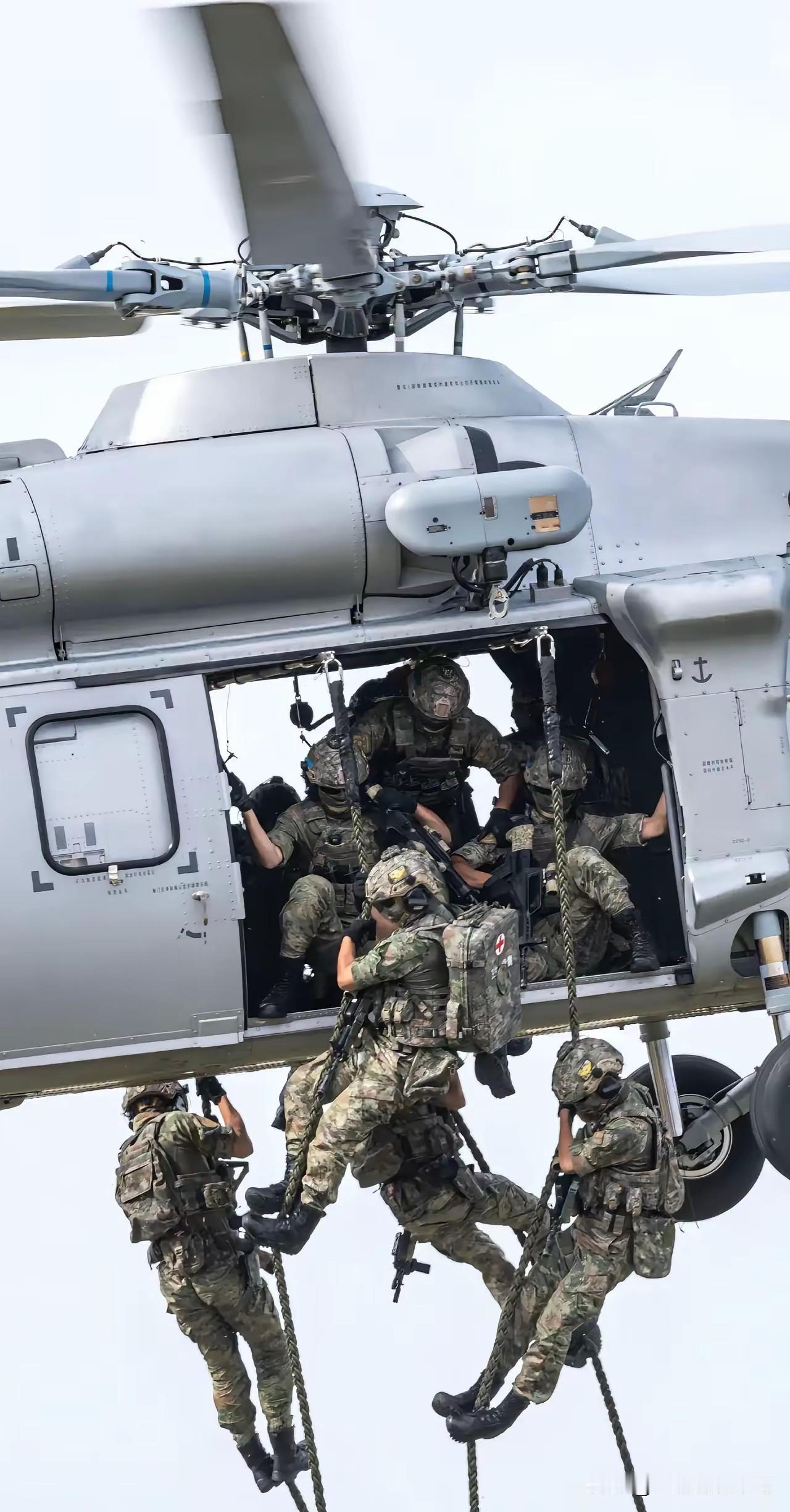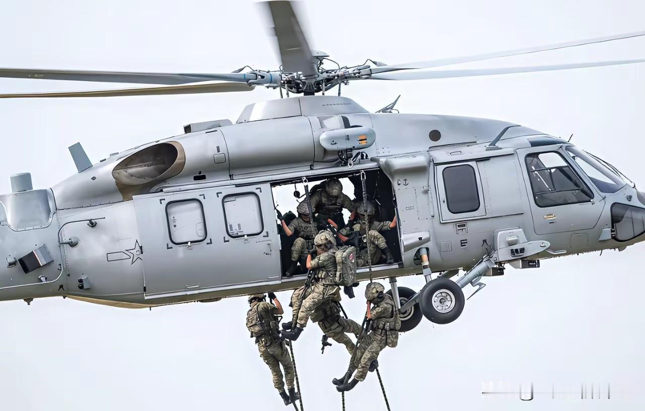 中国直20搭载空降兵,实施机动。 空降兵坐在打开门的直升机舱门处,双腿伸出舱门,简直就是艺高人胆大,以前这样的场景,我们羡慕美国,现在我们也有了。 这样的好处,就是可以快速的实施滑降,看上去特别丝滑。