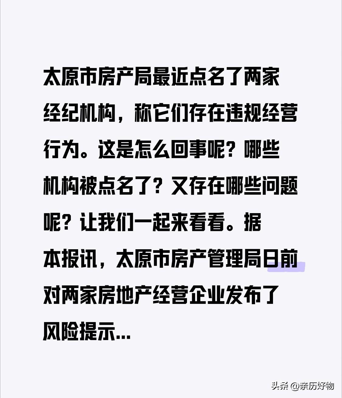 太原市房产局最近点名了两家经纪机构,称它们存在违规经营行为。这是怎么回事呢?哪些机构被点名了?又存在哪些问题呢?让我们一起来看看。 据本地报讯,太原市房产管理局日前对两家房地产经营企业发布了风险提示。这两家被点名的企业,分别是位于小店区体育西路918号长风画卷C座的山西连众公寓管理有限公司,以及另一家未具体提及名称的机构。经查,山西连众公寓管理有限公司存在未按规定在属地房地产主管部门备案的违规行为。这种行为不仅违反了相关法规,也给市场带来了不良影响。太原市房产局因此建议各房地产开发企业、房地产经纪机构、住房租赁企业谨慎与这两家机构合作,同时提醒广大市民在交易时也要格外小心,避免陷入不必要的风险。房产交易涉及金额大,一旦出现问题,后果不堪设想。所以,大家在选择经纪机构时,一定要擦亮眼睛,选择正规、有资质的机构。 此次太原市房产局的风险提示,无疑给市场敲响了警钟。大家在选择房产经纪机构时,一定要谨慎再谨慎。如果你对这方面有更多看法,欢迎在评论区留言讨论。 房地产经纪中介 太原房地产市场 房产经纪员 太原中介公司 房产经纪新规 房地产经纪行业 山西房地产资质