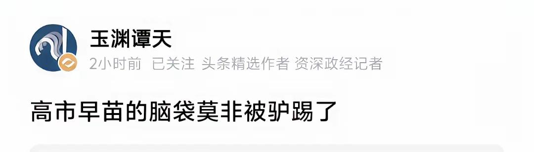 玉渊潭天这句话,让我惊呆了!他说,高市早苗的脑袋莫非被驴踢了?我豁然开朗,因为此
