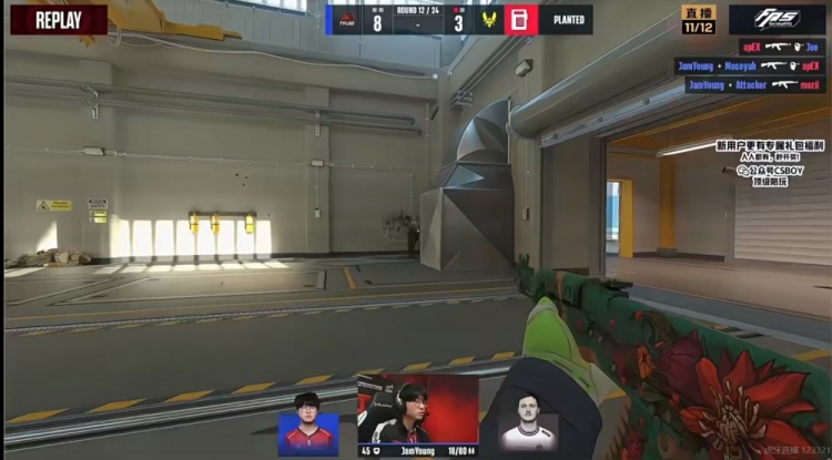 最后一局apEX单人抢到了K1,Jee大狙再次不空,TYLOO的1换2人数优势!A区包点的Attacker也打出1换1!残局VIT在A区下包,apEX贴管道双杀直接被JamYoung接住,残血打背身的mezii直接被JamYoung一个180°大转身瞬间带走!9-3!