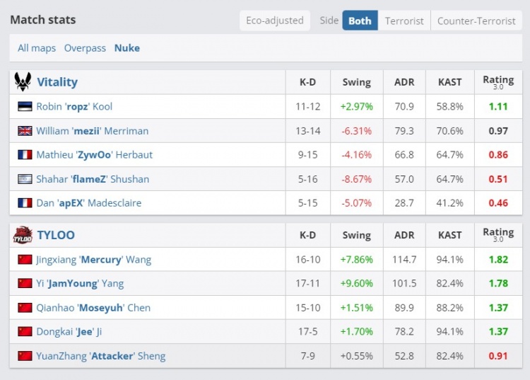 Vitality:apEX、flameZ、mezill、ZywOo、ropz