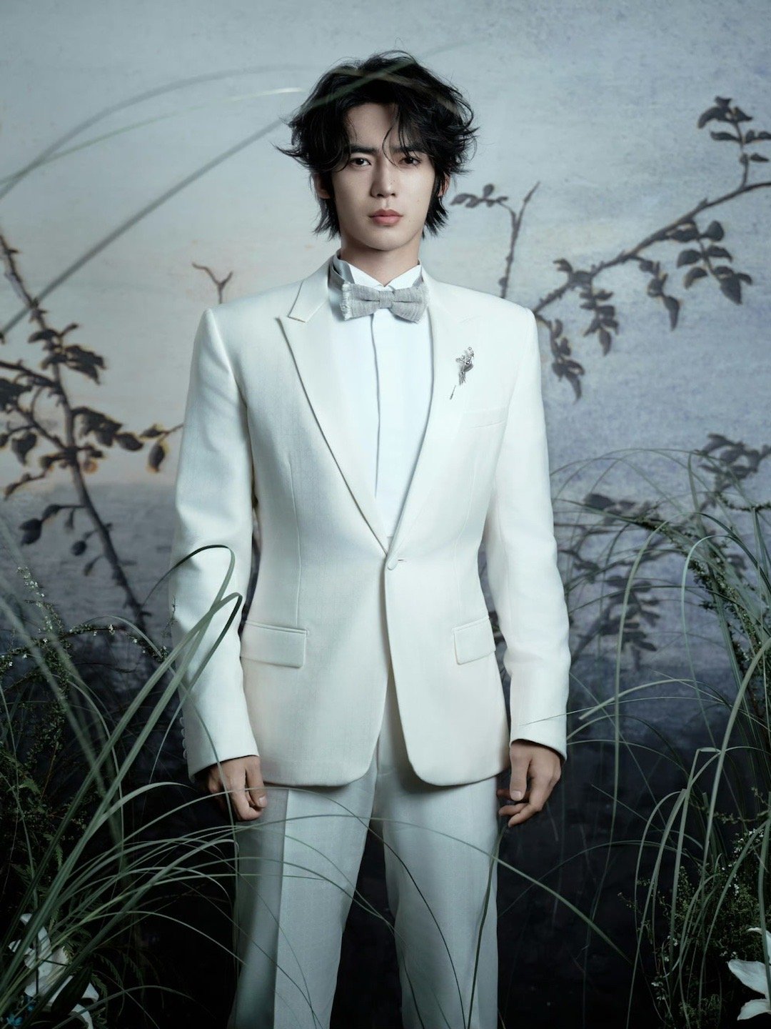 今天是从童话里走出来的白西装小王子吧!卷毛配缎面白礼服,连领结的纹理都在发光✨ 这组白西装氛围感直接封神!整个人自带的松弛贵气,像把月光揉进了气质里