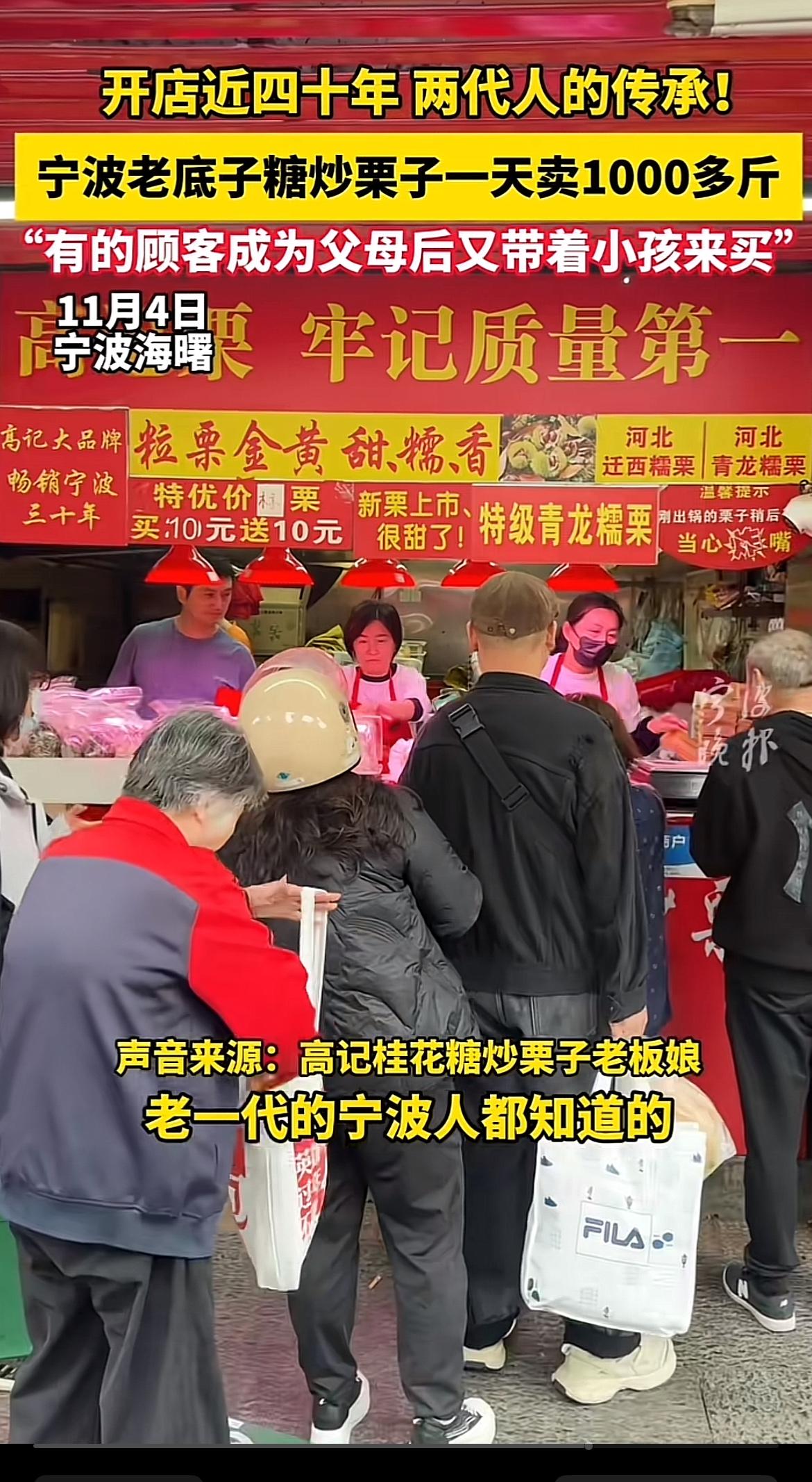 宁波老底子糖炒栗子,那真是一绝!小时候,一到秋冬,街头巷尾总能闻到那股香甜味儿。 我记得家附近有个炒栗子的小摊,老板一家做这行好几代了。他家栗子选的都是优质品种,颗颗饱满。炒的时候,用的是传统的砂炒法,糖和砂在锅里翻滚,和栗子充分融合。出锅的栗子,外壳油亮,轻轻一掰就开,里面的果肉金黄软糯,香甜可口,那味道能顺着喉咙甜到心里。每次路过,我都得买上一袋,边吃边回家,感觉整个冬天都暖乎乎的。这代代相传的手艺,真是承载着宁波的老味道!