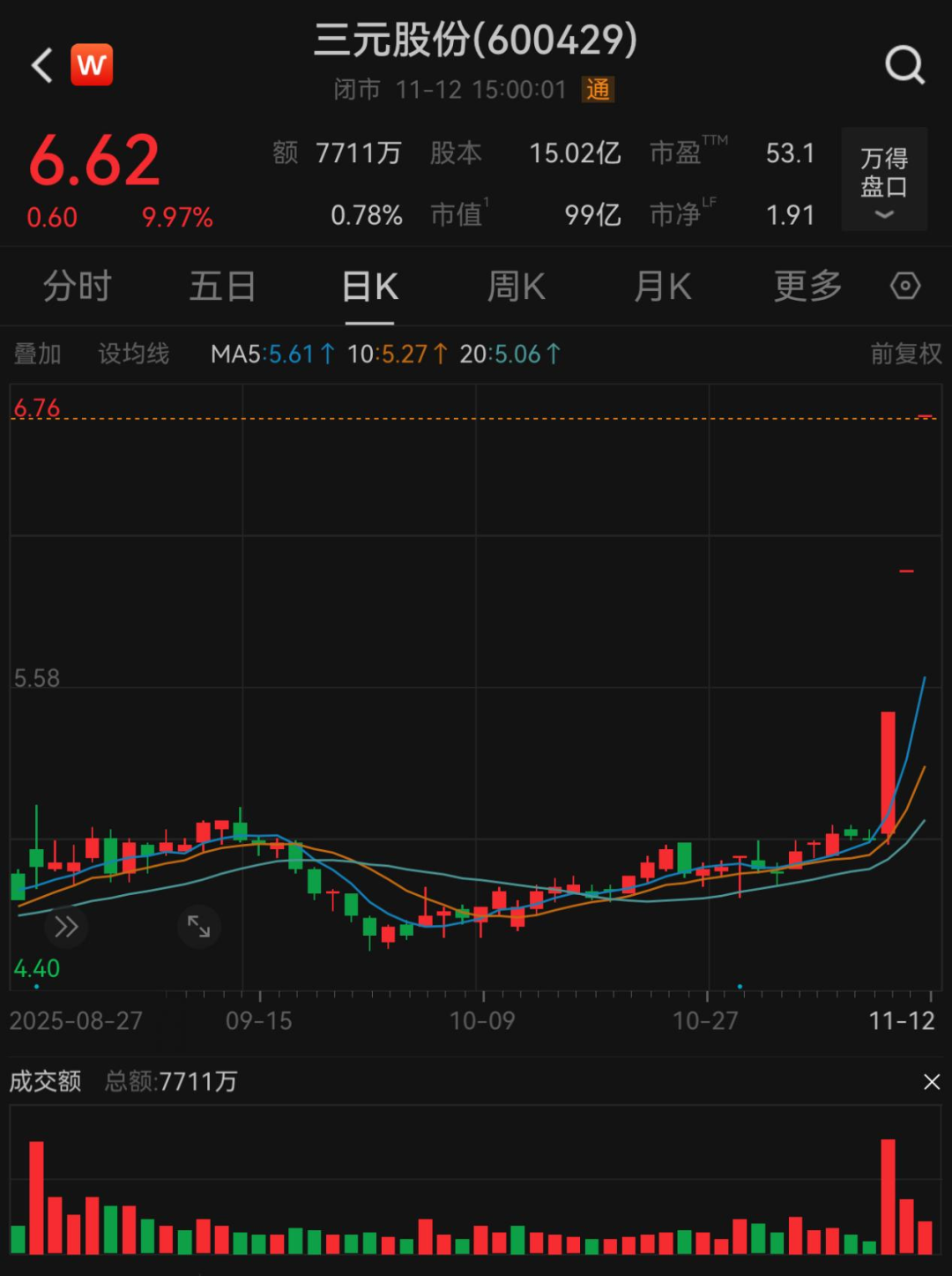 对此,三元股份在11月11日晚间发布风险提示公告后,11月12日晚间再度发布风险提示公告称,有报道称公司旗下子公司北京三元梅园食品有限公司销售奶皮子糖葫芦相关信息。经核查,奶皮子糖葫芦为三元梅园推出的季节性产品,销售周期仅几个月,收入规模占比极小。敬请广大投资者注意风险,理性投资。