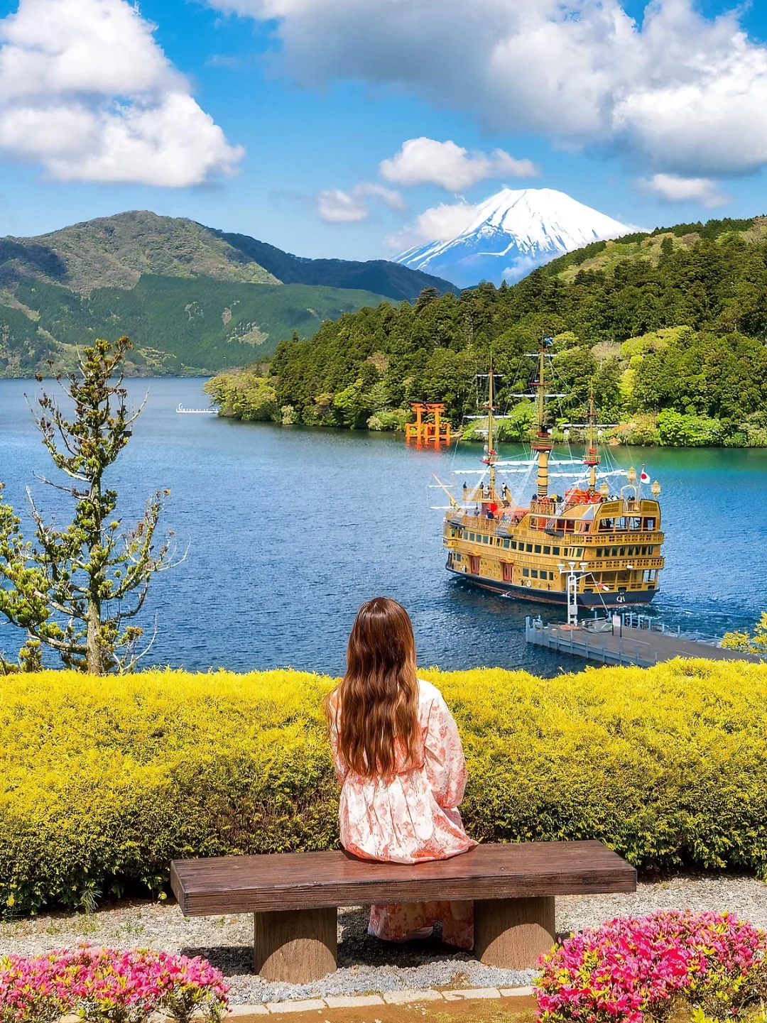 从“箱根汤本(はこねゆもと)站”搭乘往“箱根町港(はこねまちこう)方向”的箱根登山巴士,于“元箱根港”下车(约35分),步行即可抵达