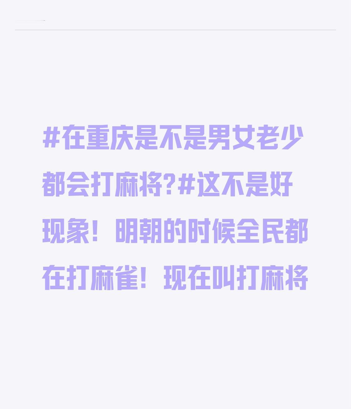 在重庆是不是男女老少都会打麻将?这不是好现象!明朝的时候全民都在打麻雀!现在叫打麻将全民热衷打麻将确实不能算是一个全然的好现象。在明朝,全民捕雀看似是为了农业生产,防止庄稼被麻雀破坏,可过度的捕杀打破了生态平衡,带来了一系列后续的生态问题。如今的打麻将,如果发展到全民沉迷的程度,也会产生诸多弊端。 对于年轻人而言,过度沉迷麻将可能会耽误自己的学业和事业。本应是努力奋斗、拼搏进取的年纪,却把大量时间耗费在麻将桌上,等到想要再奋起直追的时候,或许会发现已经错过了最佳的发展时机。而且长期坐着打麻将,缺乏运动,还会影响身体健康,颈椎病、腰椎病等问题可能会早早找上门。 对于中老年人来说,虽然打麻将可以作为一种社交和娱乐方式,但若是过于痴迷,也会影响正常的生活节奏。有的老人为了打麻将,甚至忽略了自身的饮食和休息,长此以往,身体机能下降,疾病也就更容易找上门。 当然,打麻将本身并非洪水猛兽,适度的娱乐无可厚非。但如果男女老少都陷入其中,那就需要引起我们的警惕了。我们应该倡导更加健康、积极向上的生活方式,让人们从麻将桌前走出来,去参与户外运动,去学习新的知识技能,去陪伴家人朋友,这样才能让社会充满更多的活力与正能量。