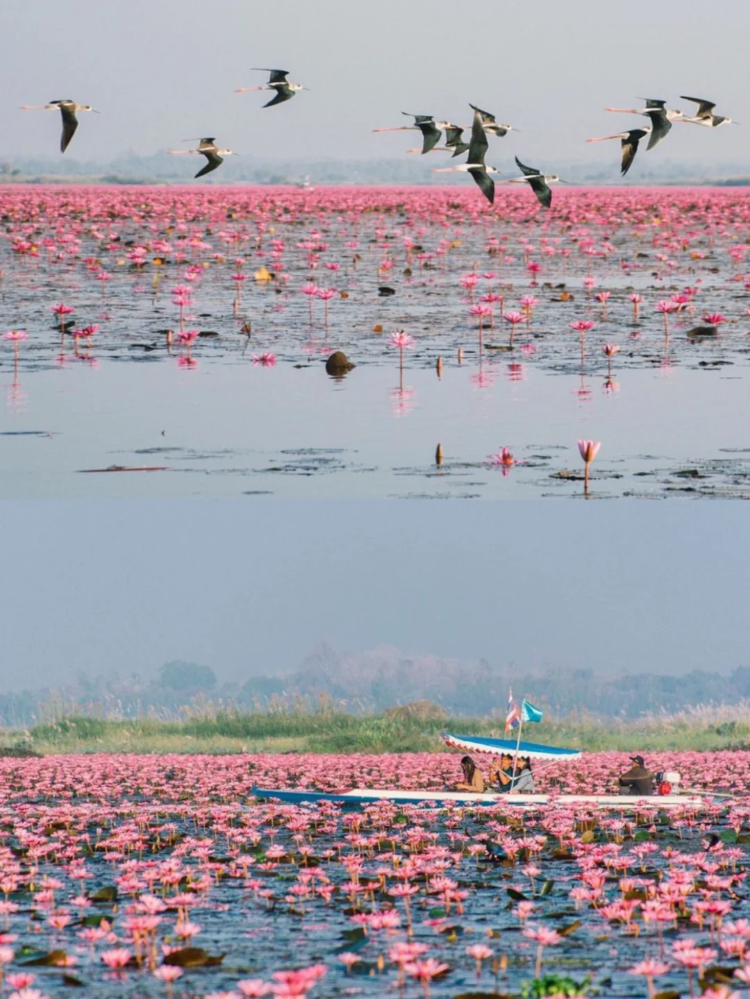 🔹这片湖泊让 CNN 将其列为世界上最奇怪的湖泊之一,旺季盛开时有将近十万多莲花,面积相当大,湖中还有好几个岛和很多鸟类。