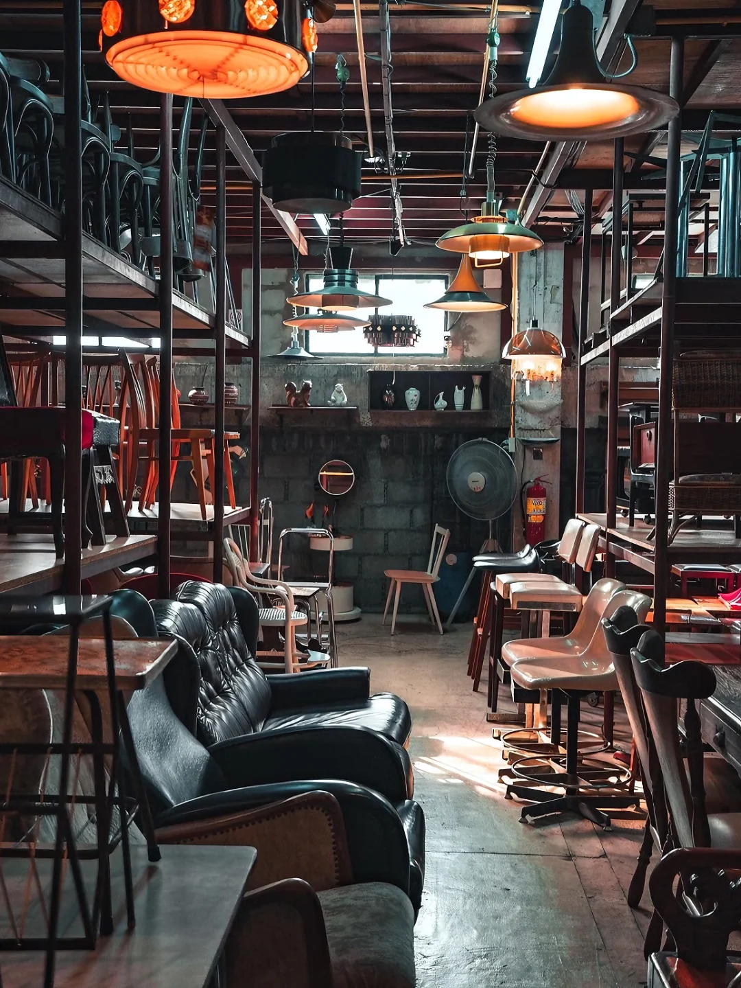 🔹二楼会有一些不一样的小场景,有很多旧东西做成的小酒吧,复古味十足,大厅里有很多椅子,墙上挂着文艺复兴风格的油画和欧式吊灯,每一处都超级对Vintage爱好者的胃口