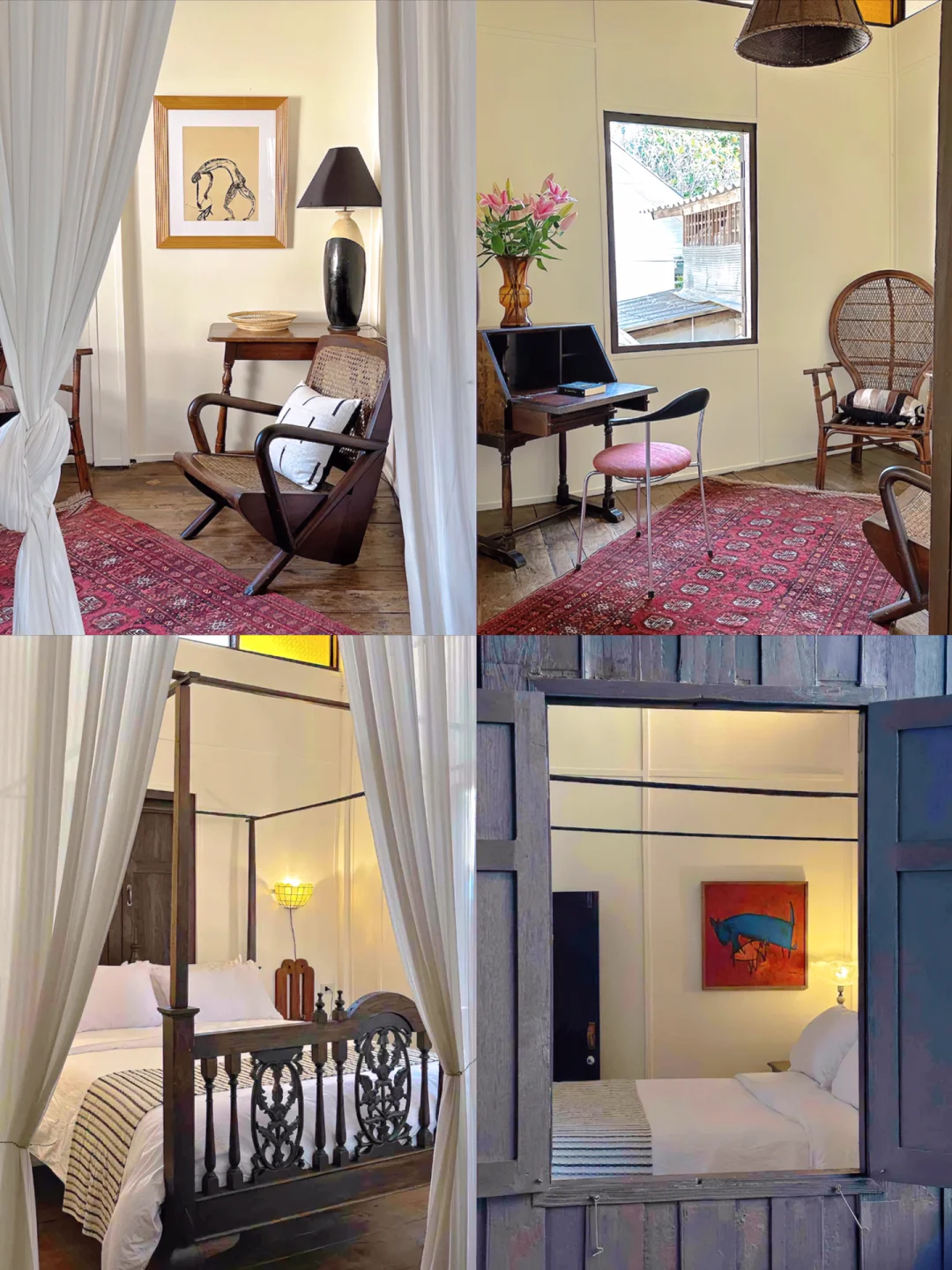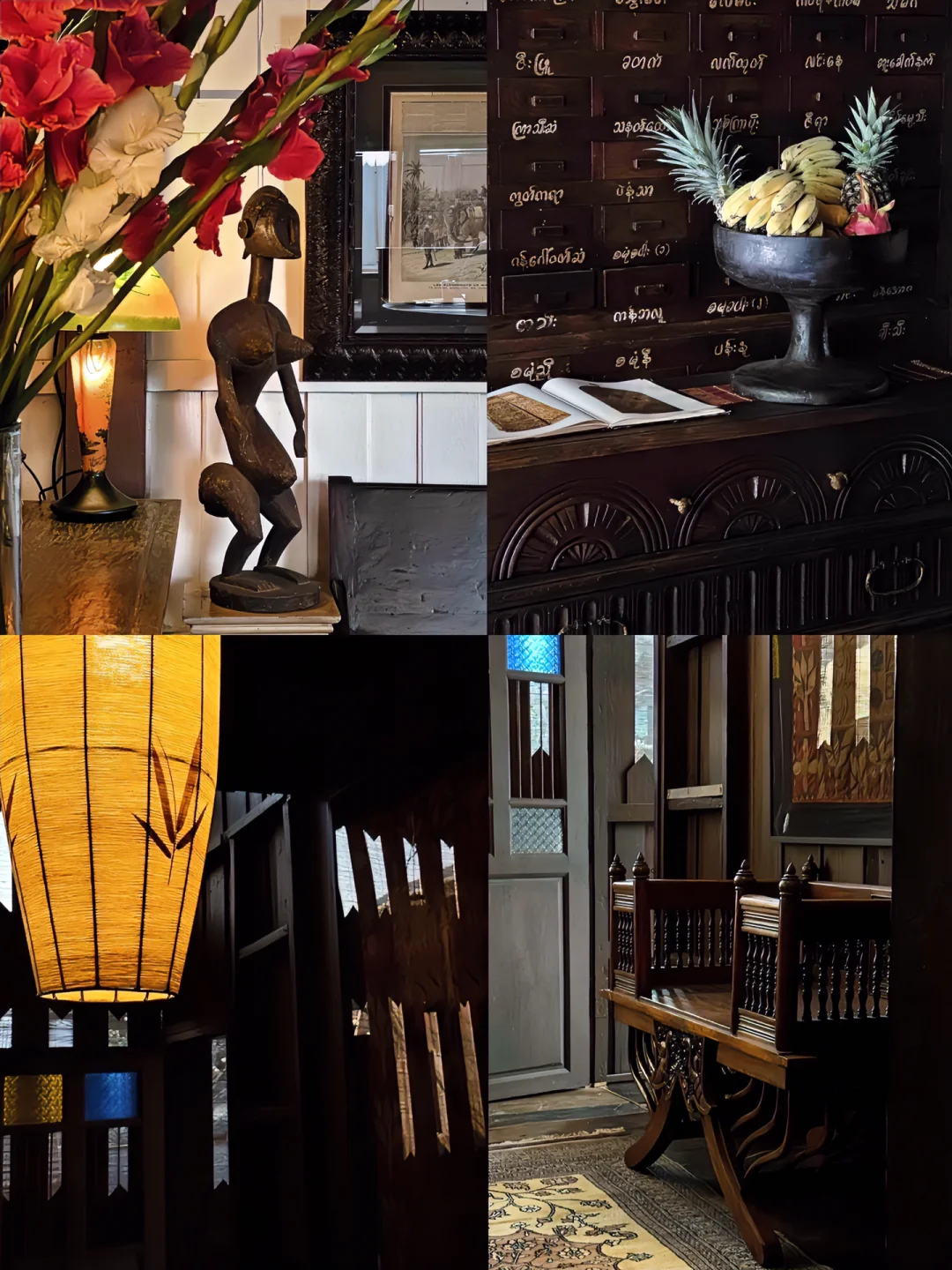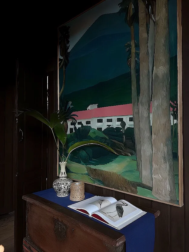 ▪️ 前院是公共区域,大厅陈列了房东收藏的古董家具,以及一个种满热带植物的小庭院