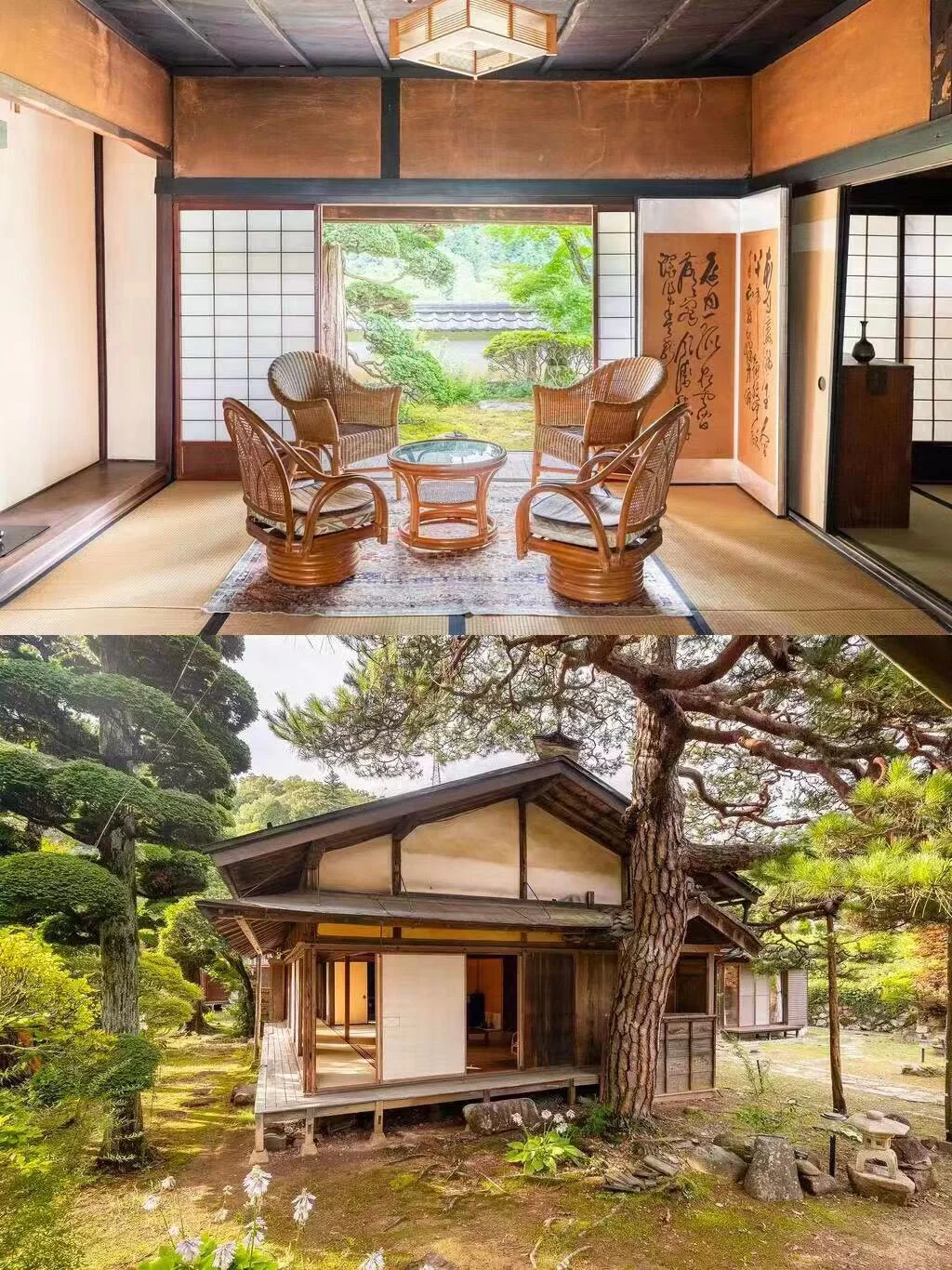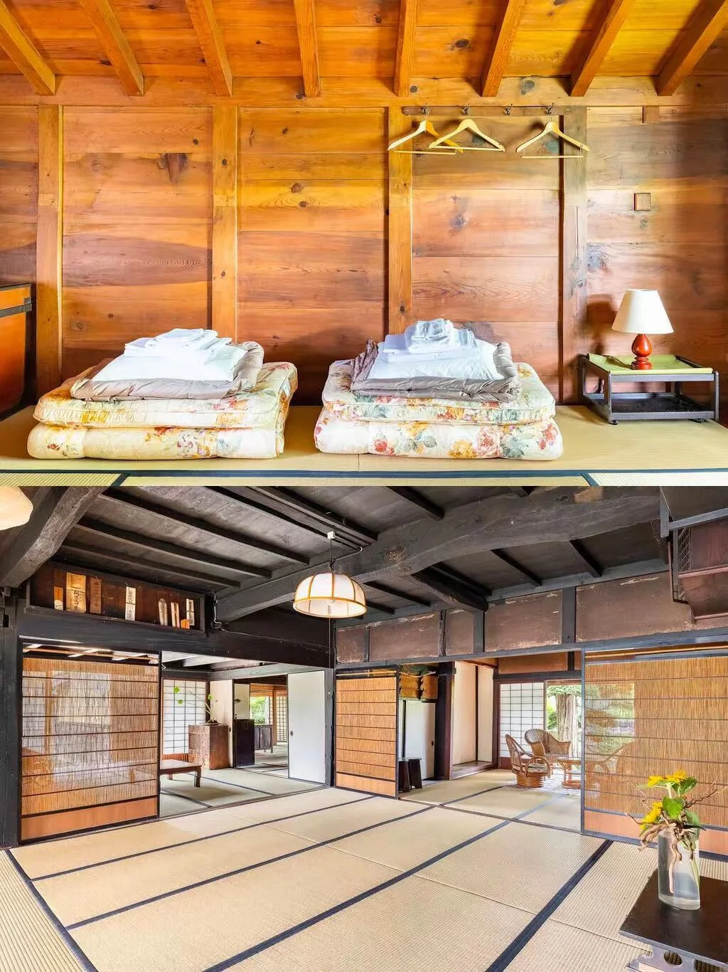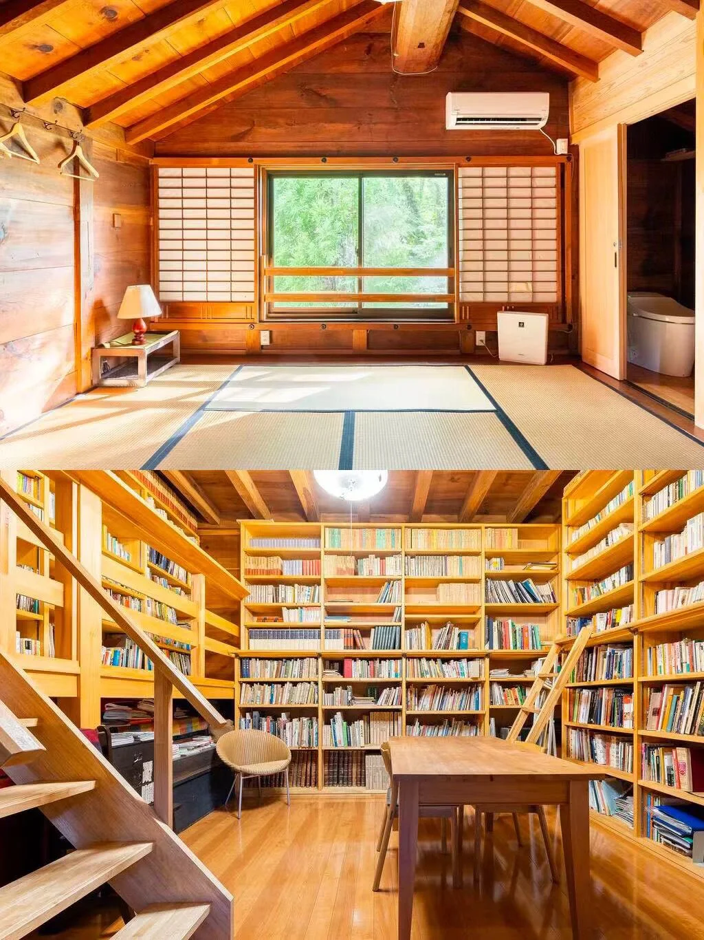· 民宿一楼是图书馆,卧室在二楼,是8个榻榻米垫,可以欣赏到花园的美景~