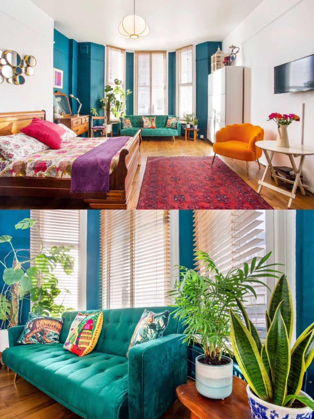 ▪️ 天花板很高,非常宽敞!海湾窗、木地板、超大床、和天鹅绒沙发都很赞~
