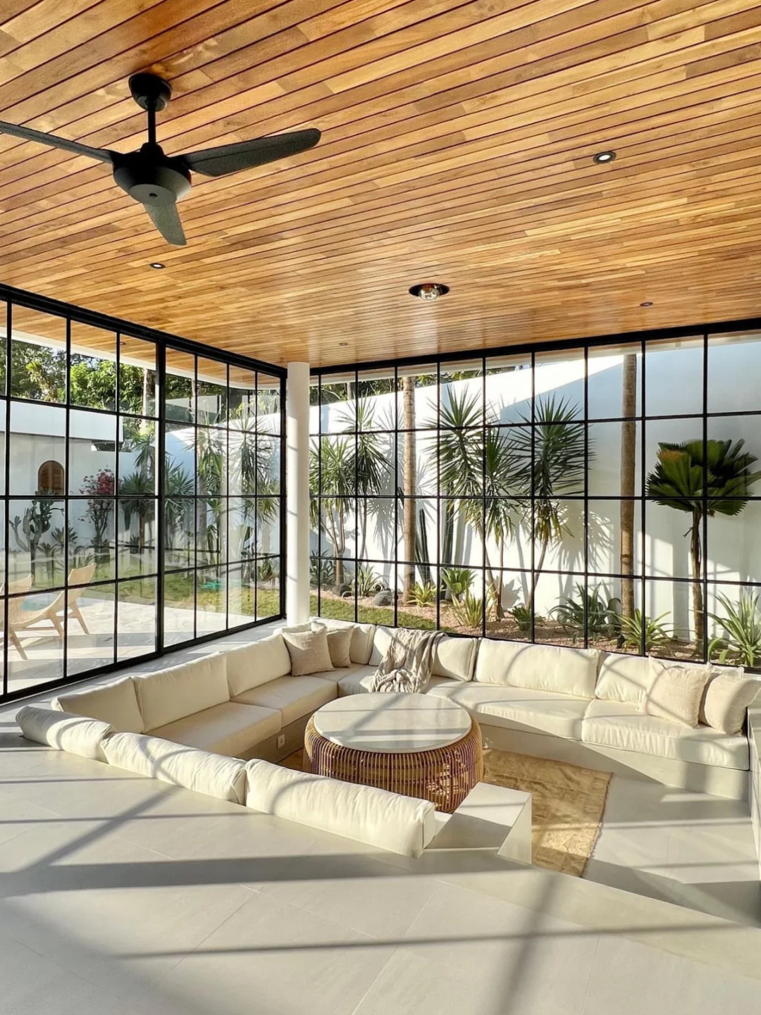 ▪️ 别墅设计的超级美,最大的亮点莫过于明亮的落地玻璃窗,四周芭蕉叶环绕
