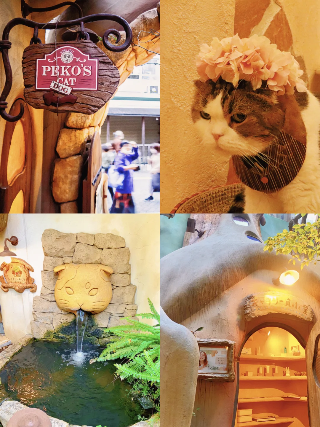 🔹这里有7家不同主题类型的商店,最火的当属猫咪咖啡厅啦,猫咖里面的猫咪都非常可爱,店内的各种装饰物也充满了童趣,每个桌子上都放着不同猫咪的简介,还有各种原创甜品