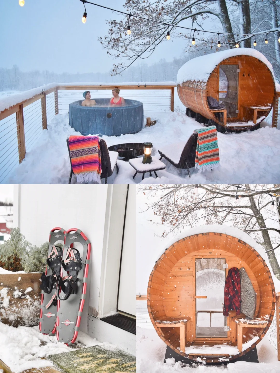 ▪️ 很喜欢屋外的热水浴缸和小桑拿房,冬天欣赏着雪景泡澡,真的是惬意且特别的体验