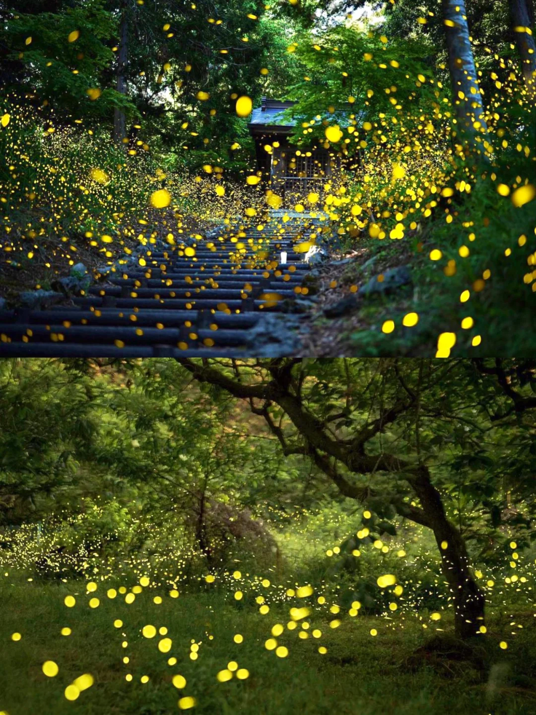 🌼如果你是摄影爱好者,岐阜县揖斐川町的飞鸟町一带,一到初夏就可以看到四处飞舞的萤火虫,拍照真的超级美!星星点点浪漫至极~
