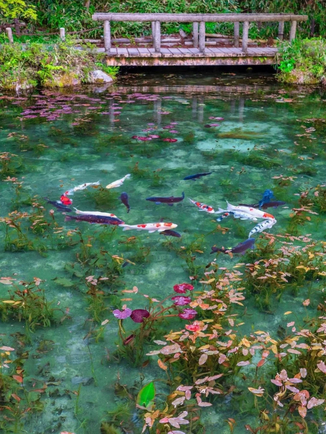 🪷这个池塘本来是个无名之池,当地居民为增加可看性在这里种植了睡莲,还养了很多锦鲤!仿佛莫奈笔下的名画~这里也渐渐成为一个网红打卡地!