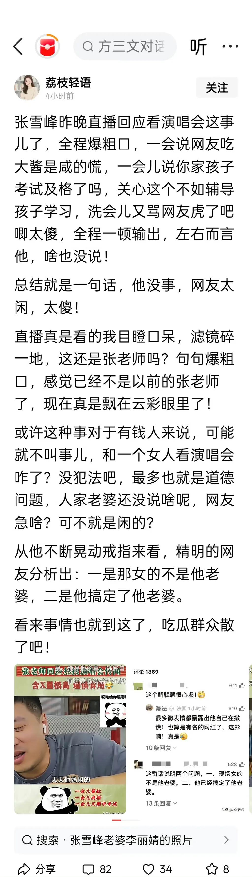 张雪峰回应与女生一起看演唱会,主要说明三点。最近几天,他又上了热搜,当然,对