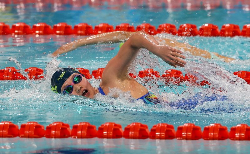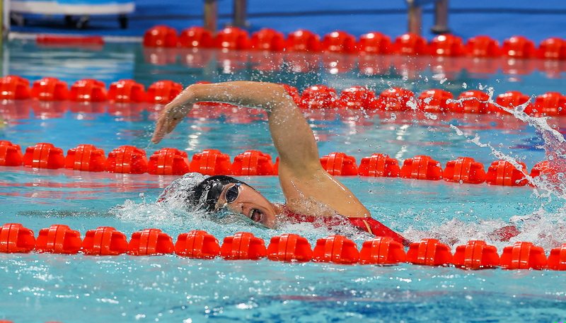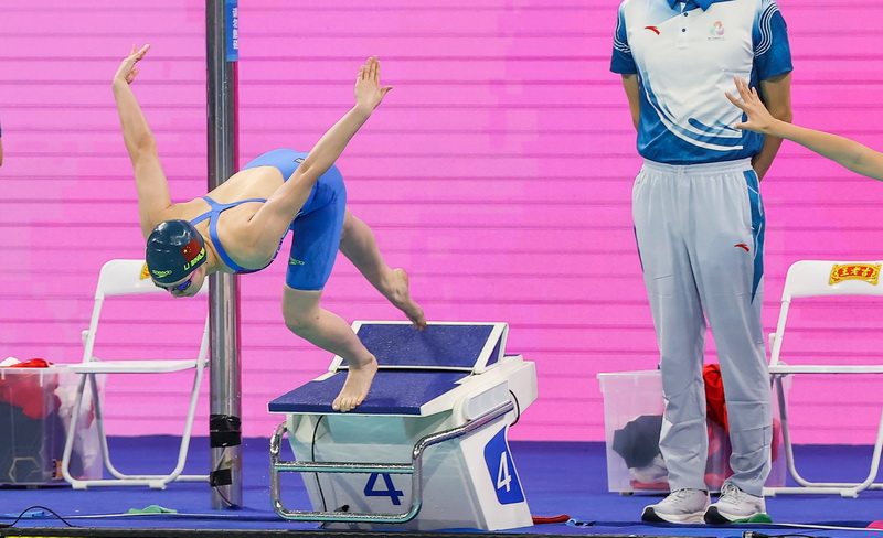 11月12日,河北运动员李冰洁(左)在比赛中。